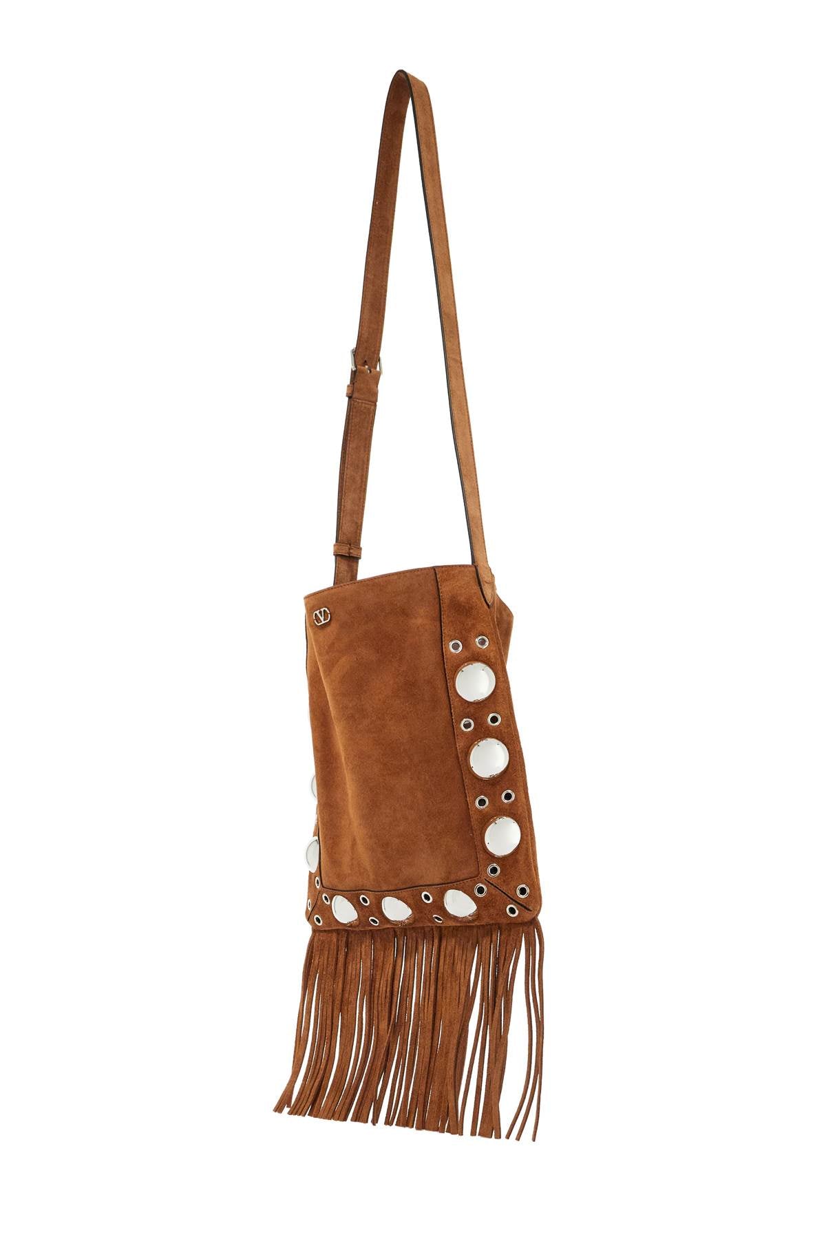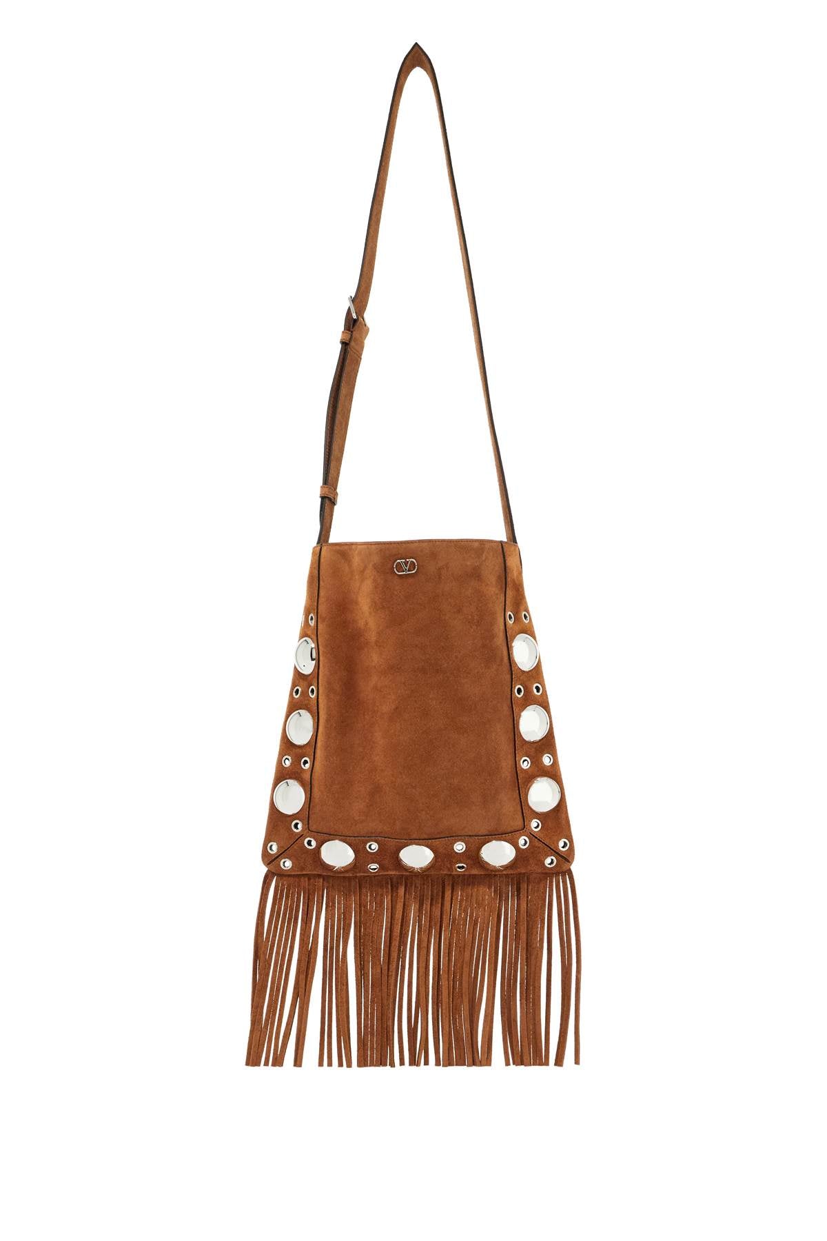 Valentino Garavani brown copper suede crossbody bag with studs and fringe