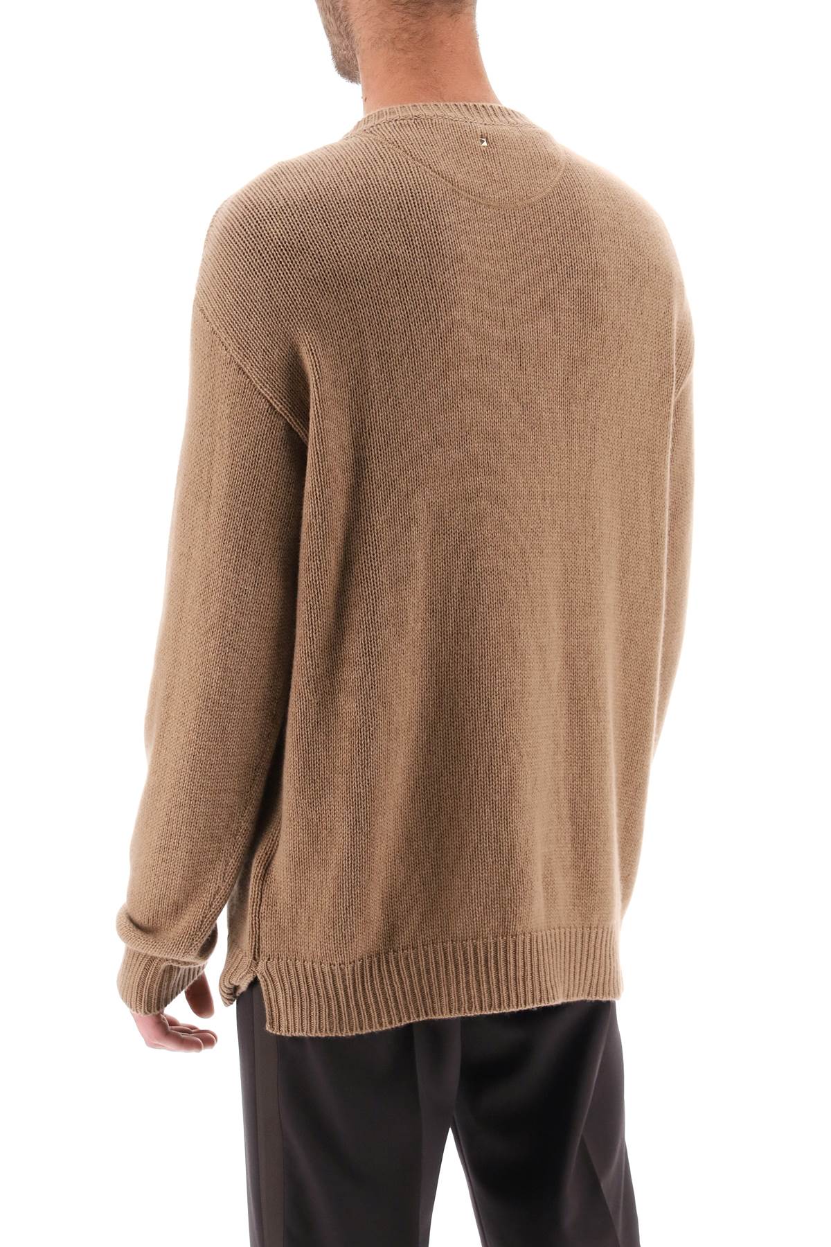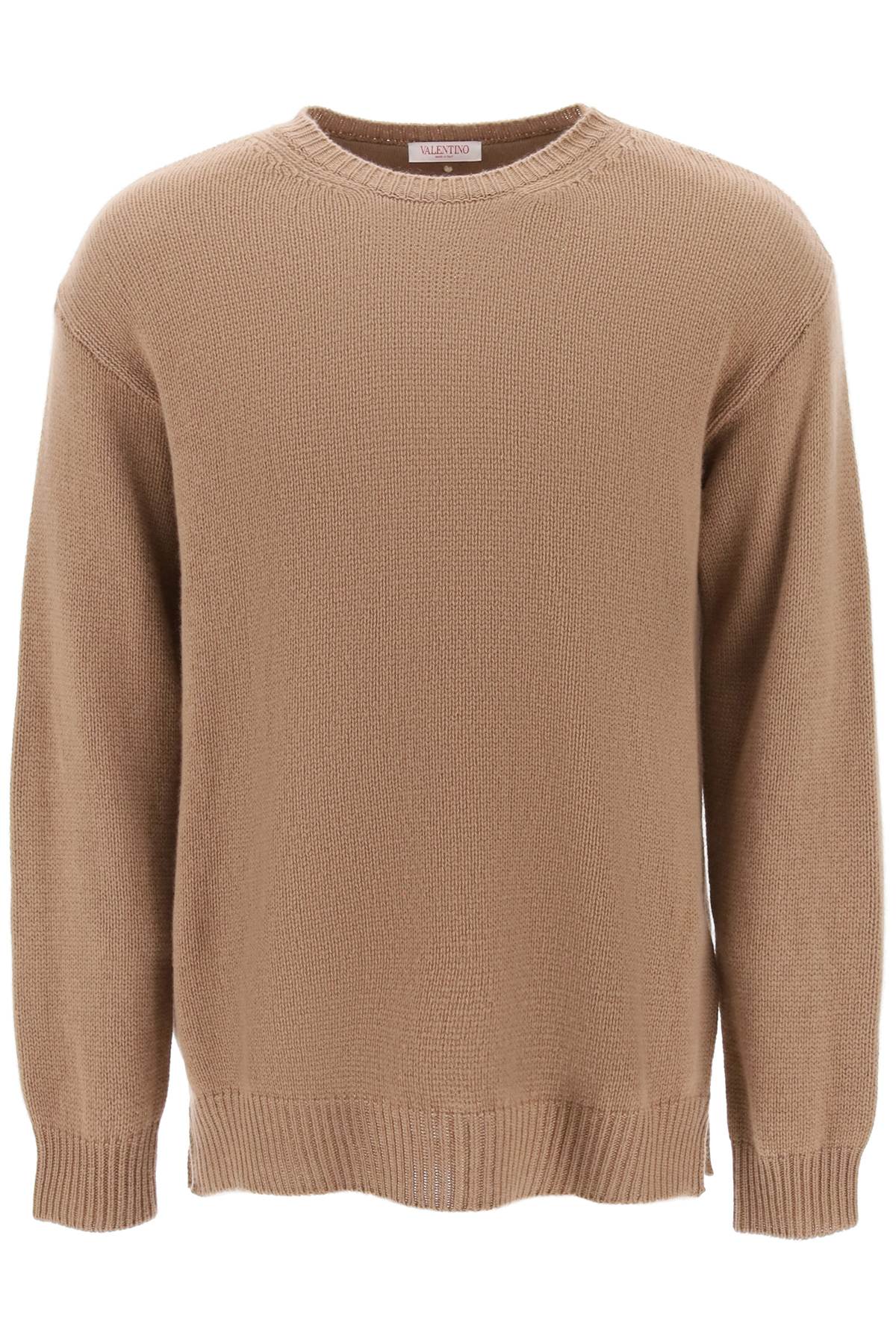 Valentino sweater crafted in pure cashmere cable knit. Embellished with the iconic stud on the upper-back, this model features ribbed crew-neck, cuffs and hem. Oversized fit with low-set sleeves and side slits. The model is 187 cm tall and wears size L.