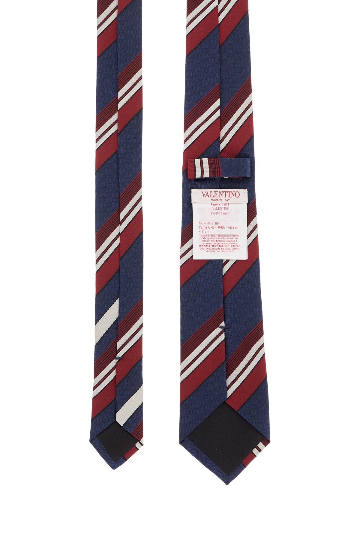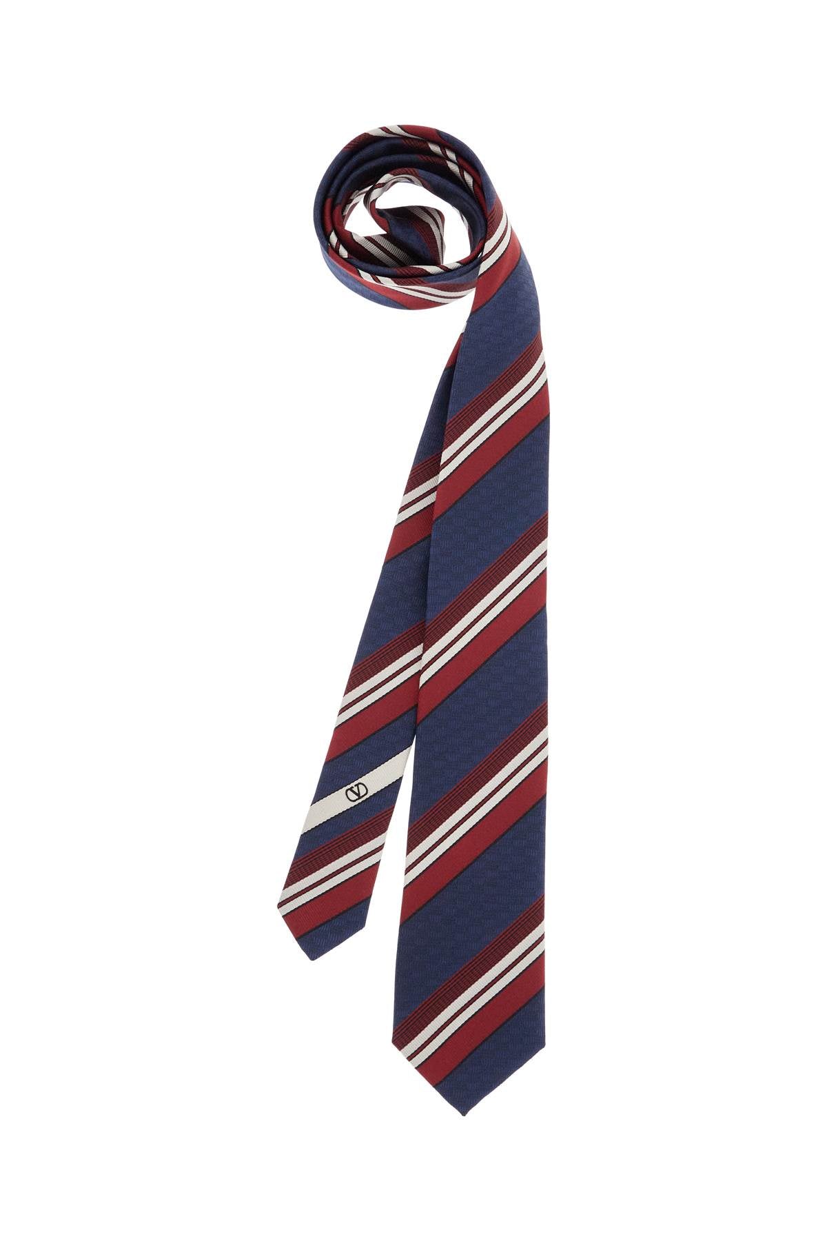Valentino Garavani dark blue silk tie with diagonal bordeaux and white stripes