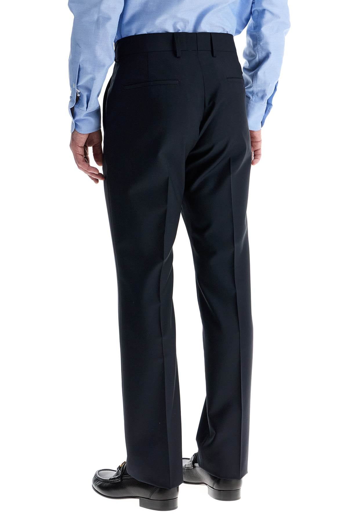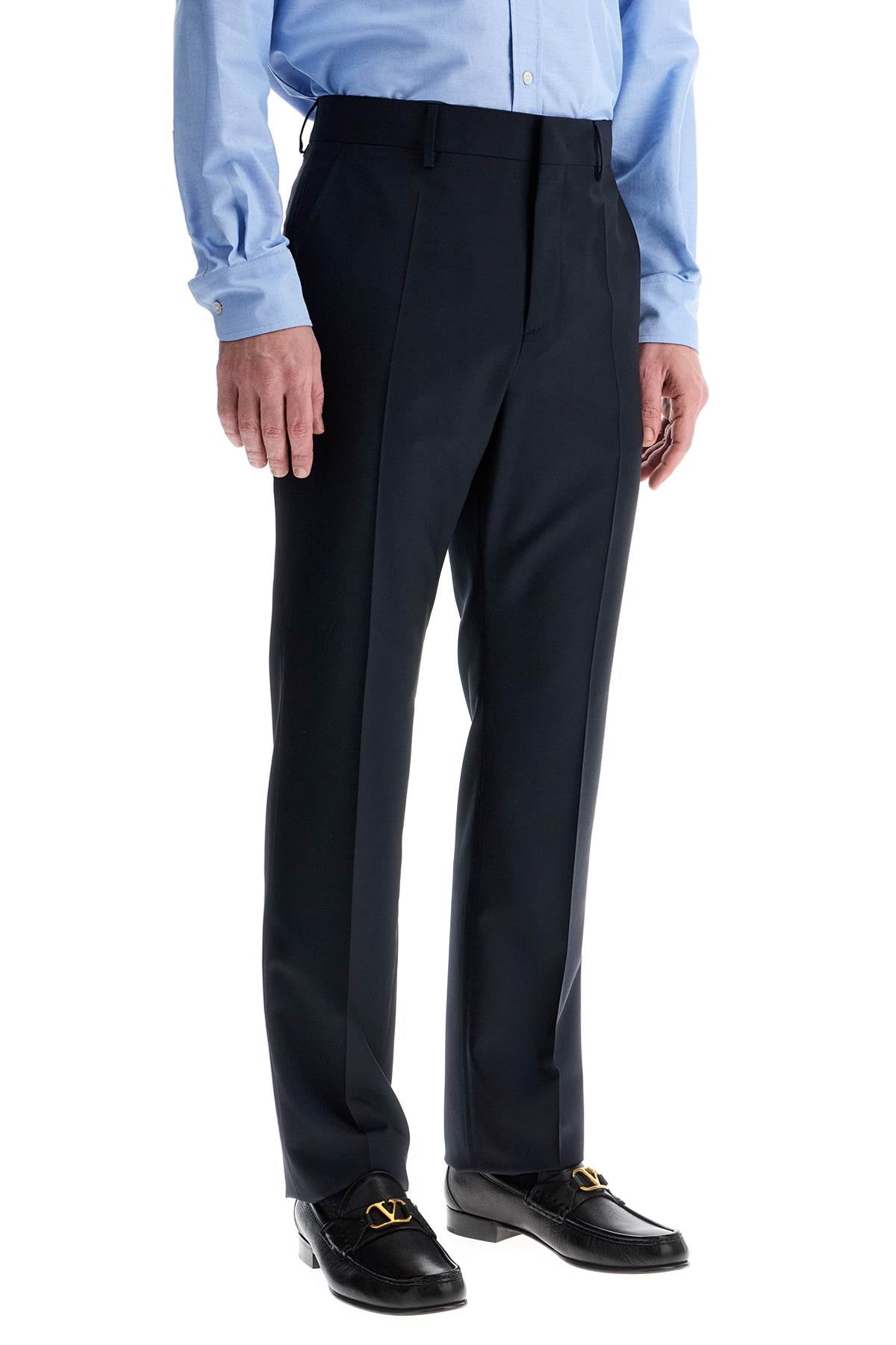 Valentino Garavani elegant pants in dark blue wool offer timeless style. Regular fit with front pleats for a sophisticated look. Made in Italy combines tradition and contemporary design.