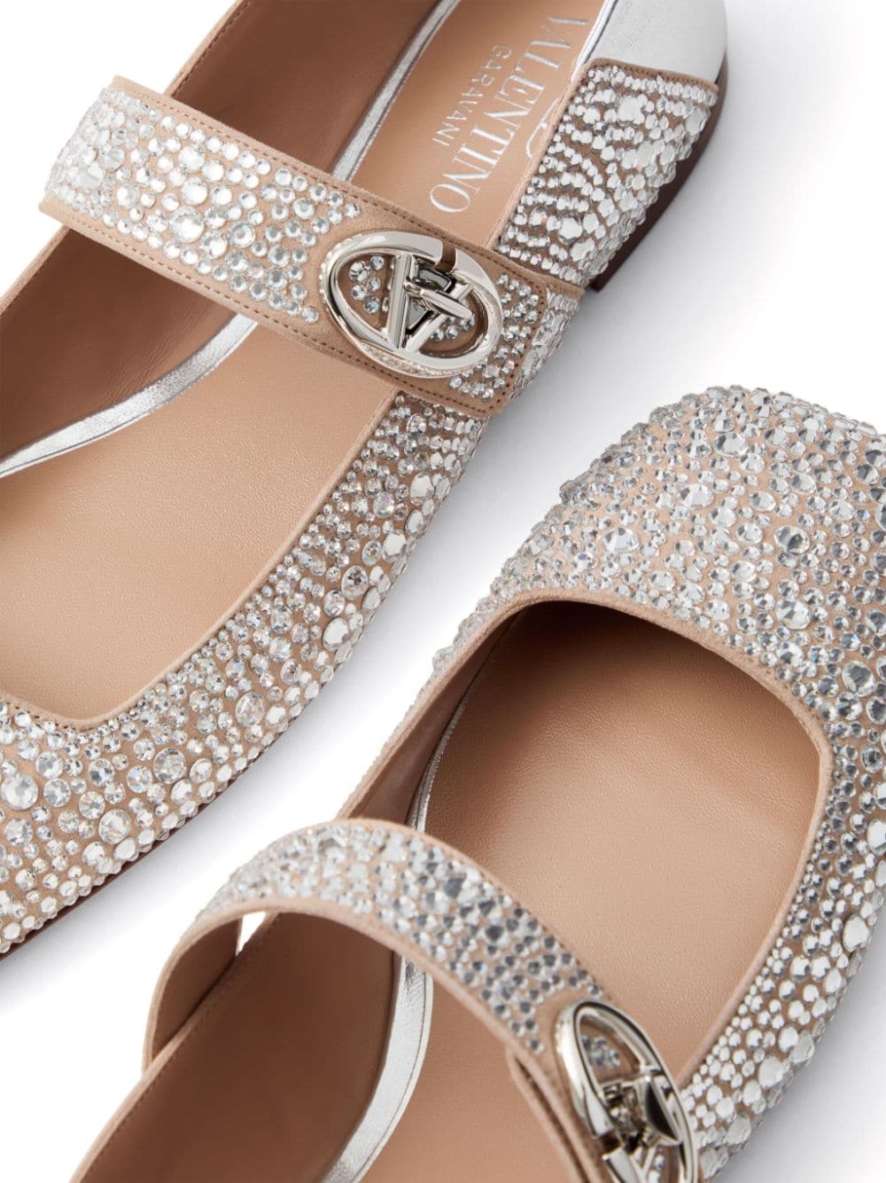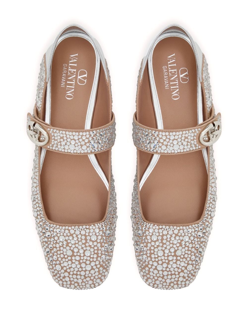 silver-tone calf leather crystal embellishment VLogo Signature elasticated strap low heel Size and Fit - Heel 0,2 in / 0,5 cm