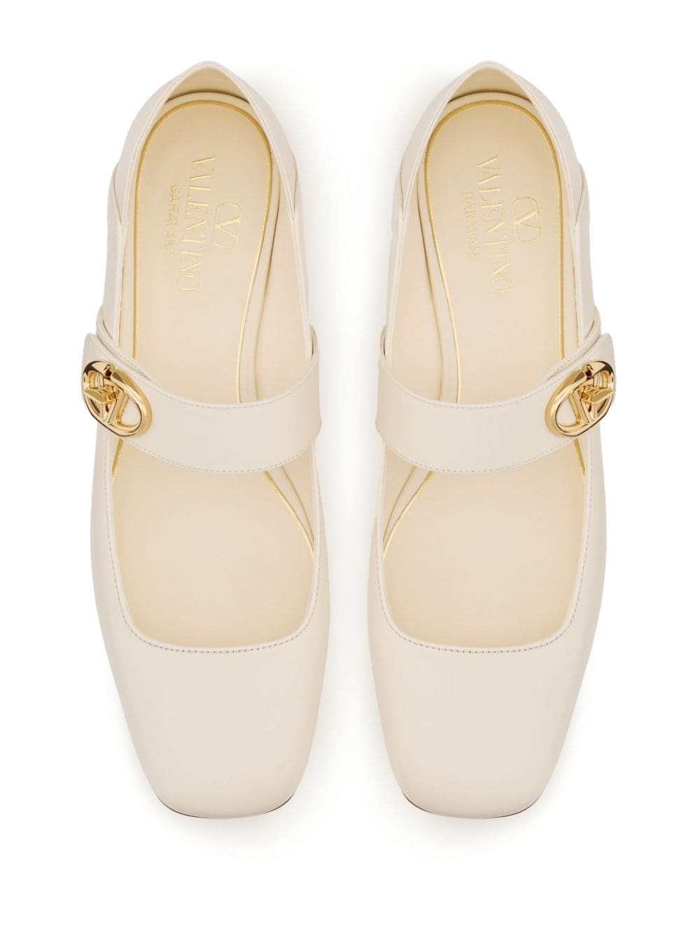 ivory white calf leather/lambskin VLogo Signature square toe side touch-strap fastening branded insole flat sole Size and Fit - Heel 0,4 in / 1 cm