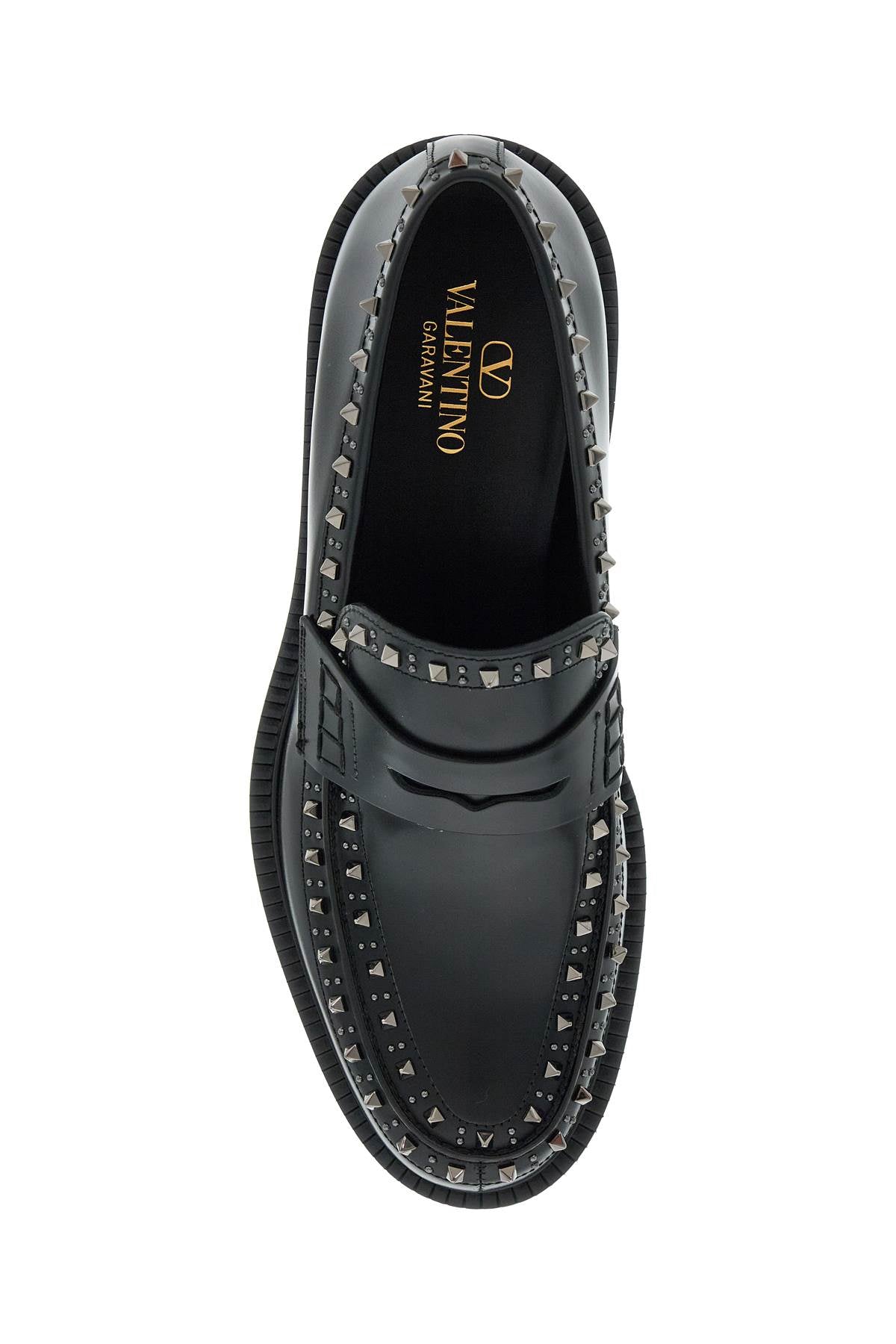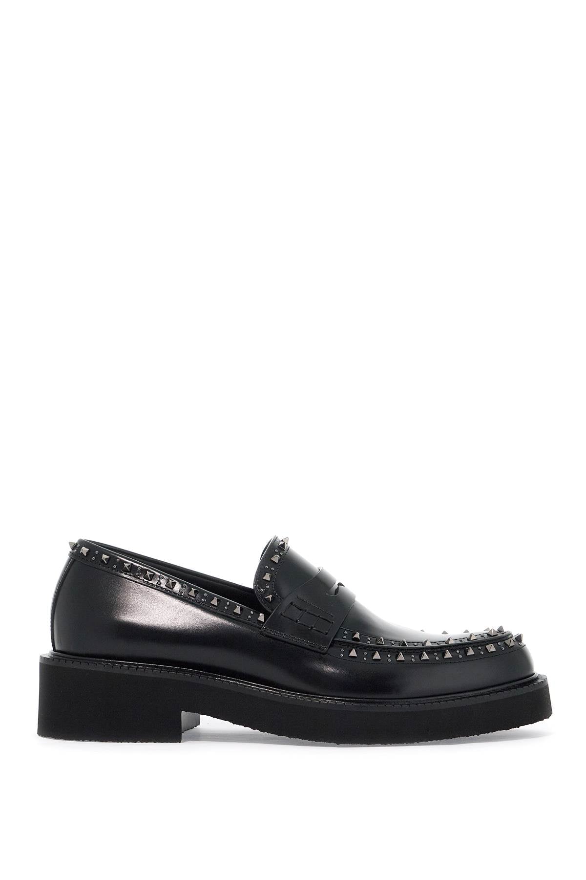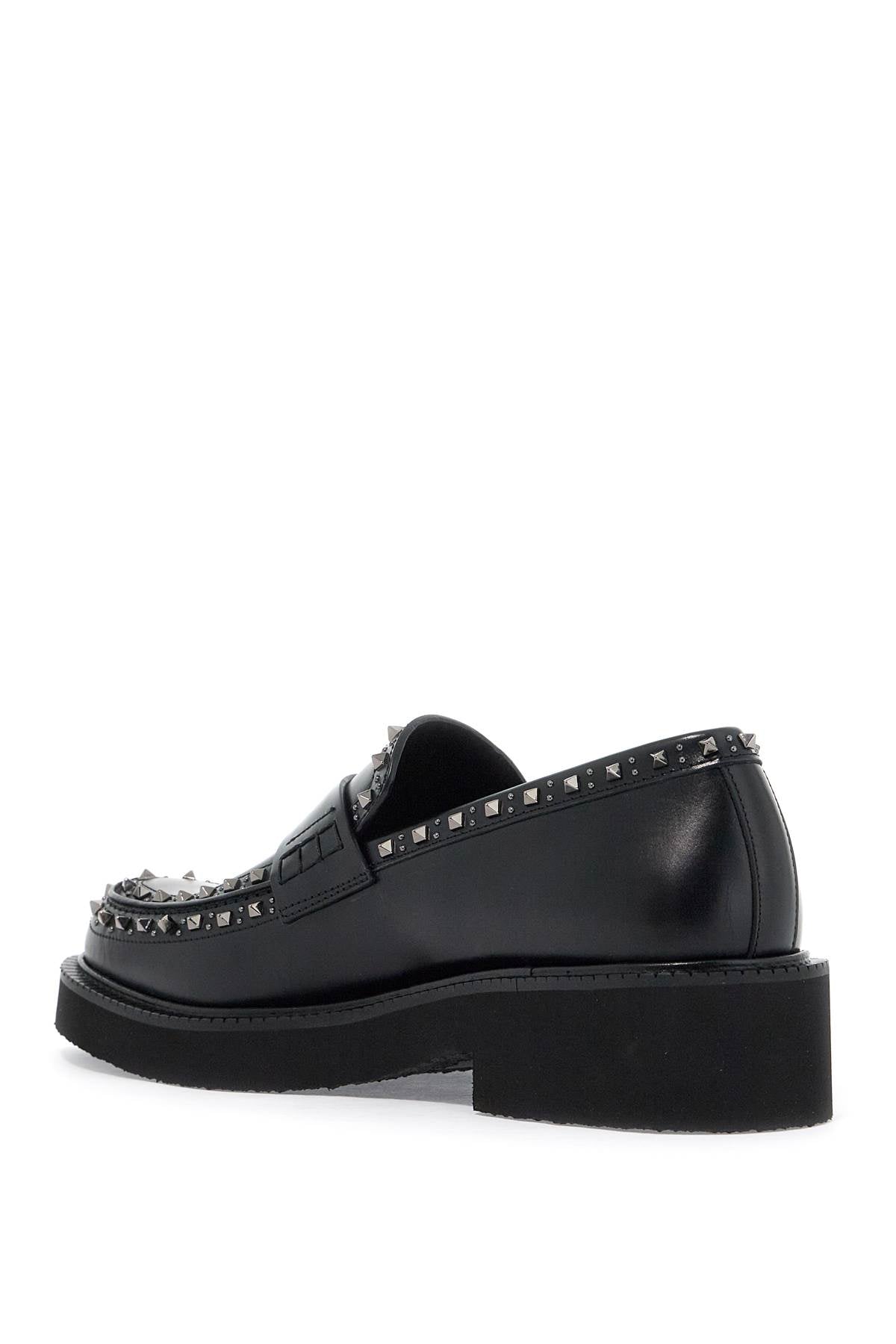 Valentino Garavani Gentleglam loafers made of smooth semi-gloss leather and embellished with mini studs and rivets in ruthenium finish. The interior is lined with leather and features a slightly padded insole, while the sole is made of rubber. Size and Fit - Heel Height = 4,8 cm,