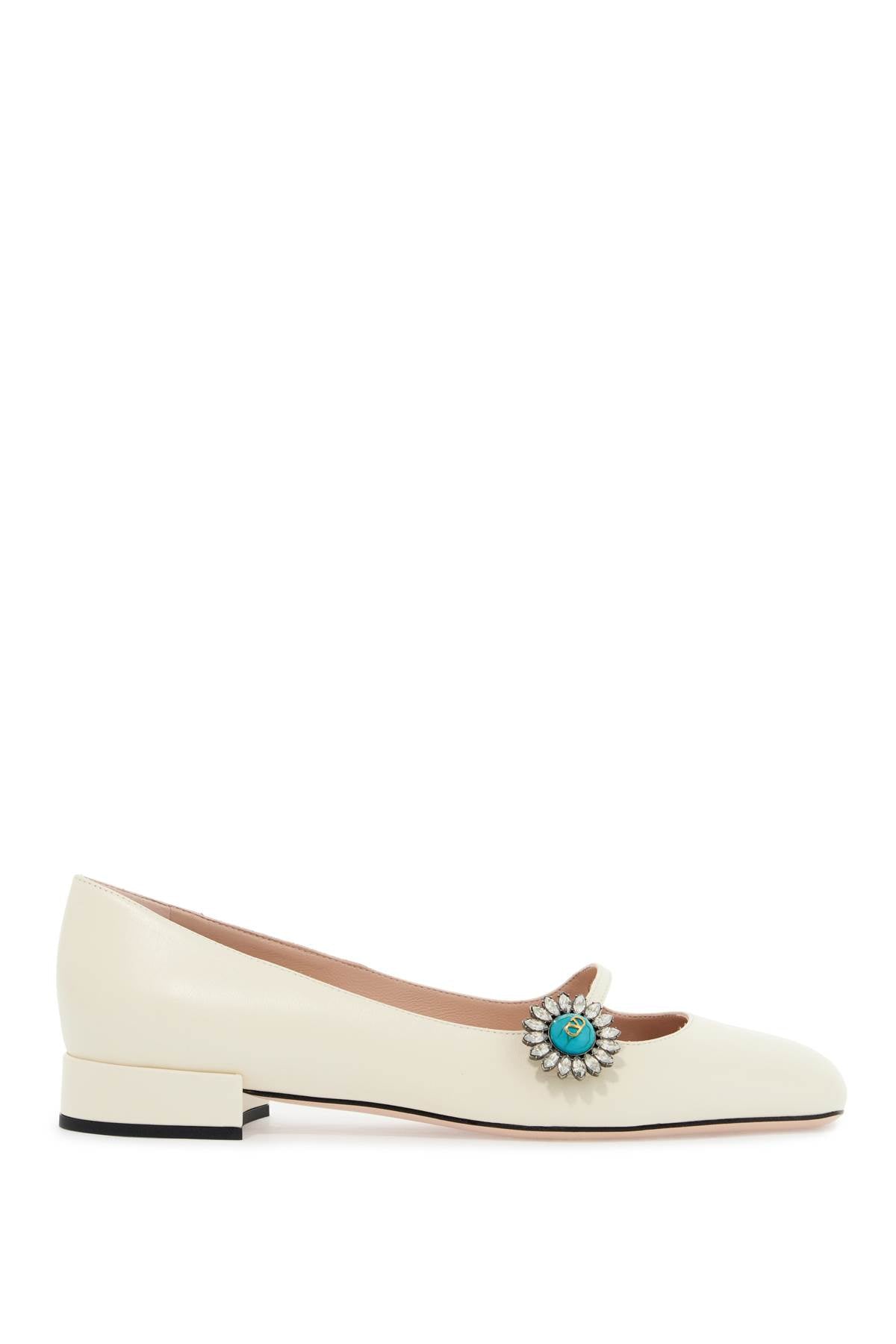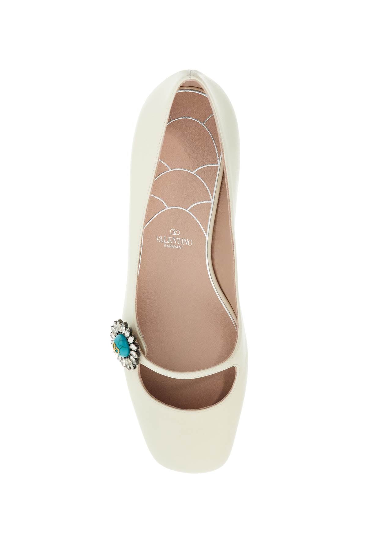 Valentino Garavani ivory kid leather ballerinas with crystal flower