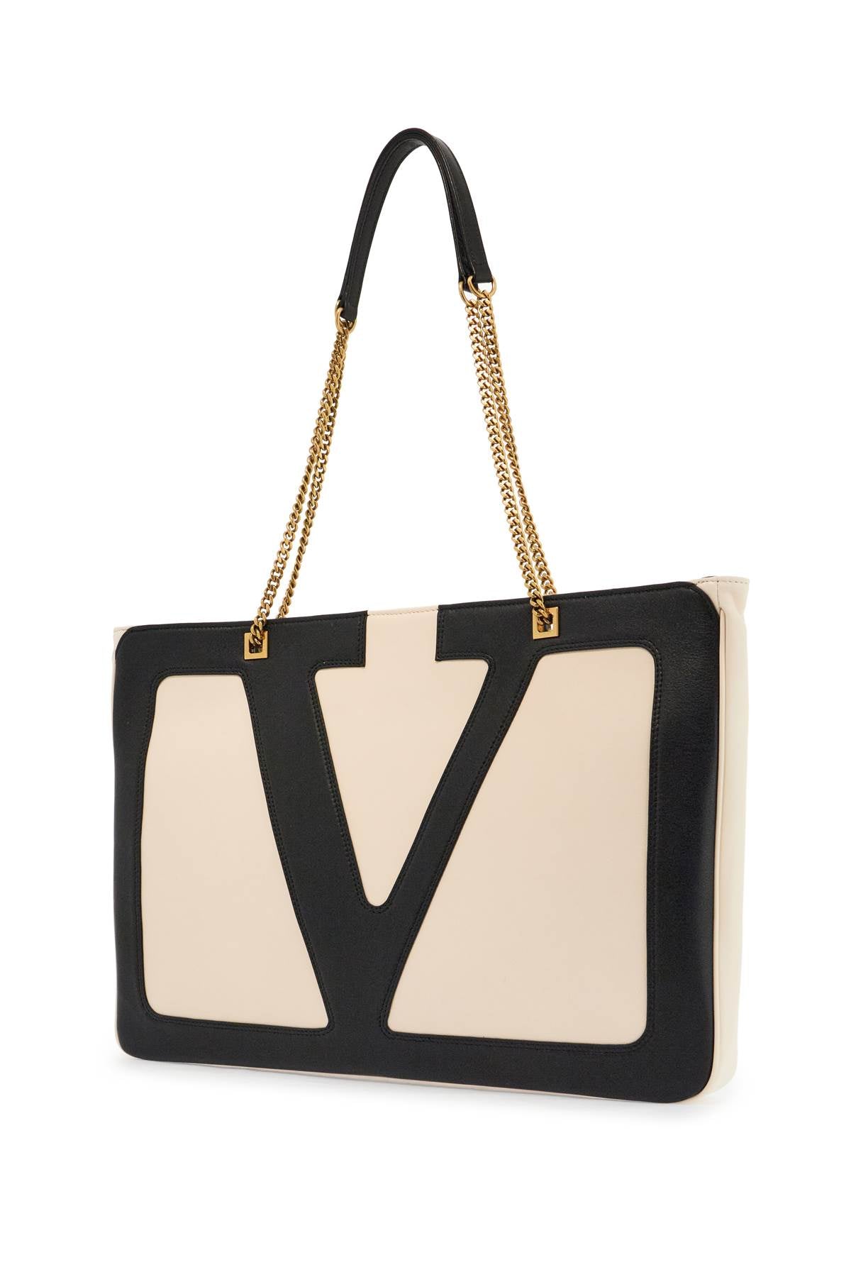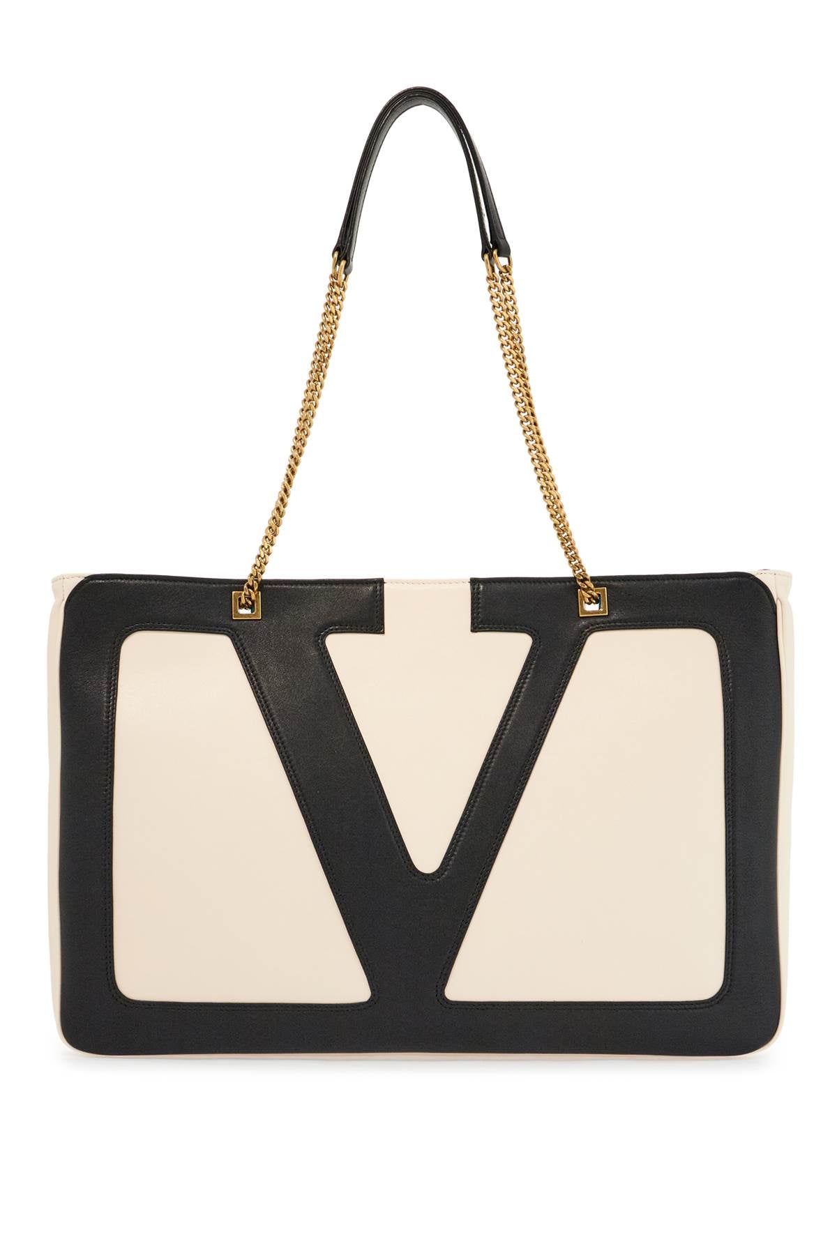 The Valentino Garavani tote bag combines elegance and practicality. In white leather with oversized 'V' logo and golden chain handles, it offers ample space and timeless style. Size and Fit - Bag Length = 40 cm, Bag Height = 30 cm, Bag Weight = 15 cm,