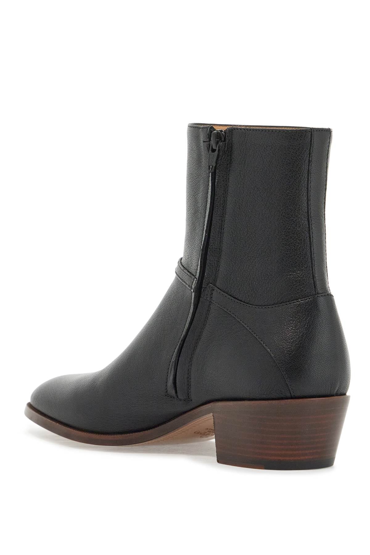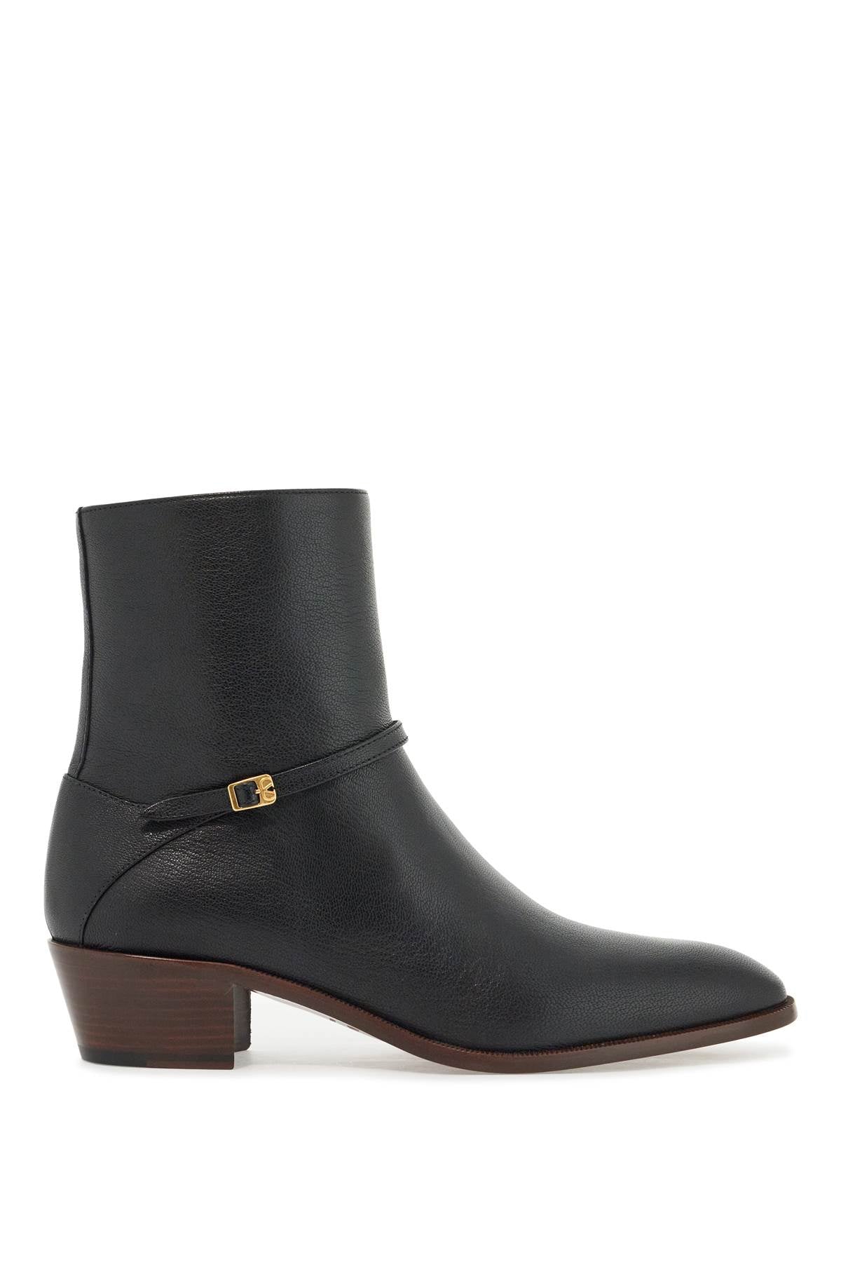 Valentino Garavani's Pat ankle boots feature an essential design, crafted from soft leather and detailed with the VLogo Signature buckle in golden metal on the strap. They have an almond toe, a side zip closure, a leather interior with padded heel, a chunky heel, and a leather sole. Size and Fit - Heel Height = 5 cm,