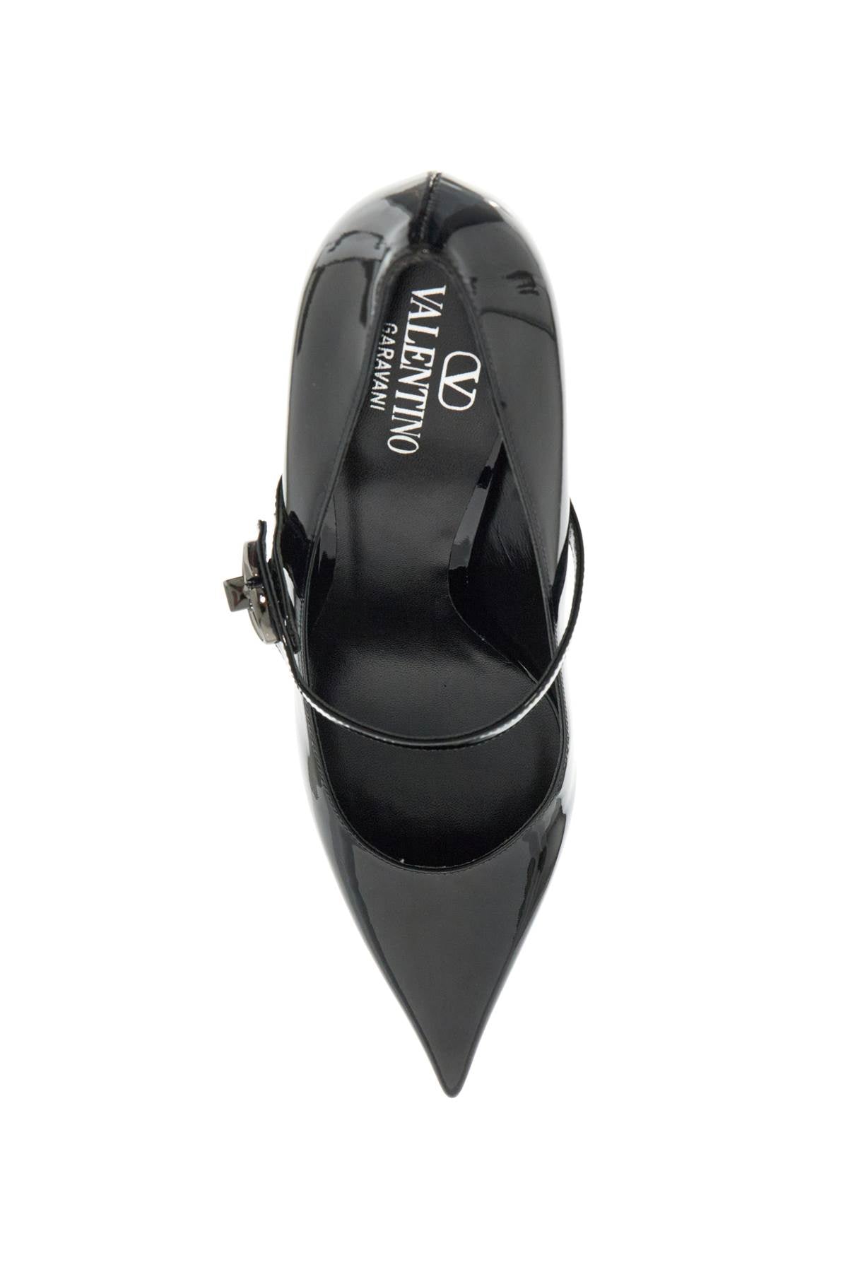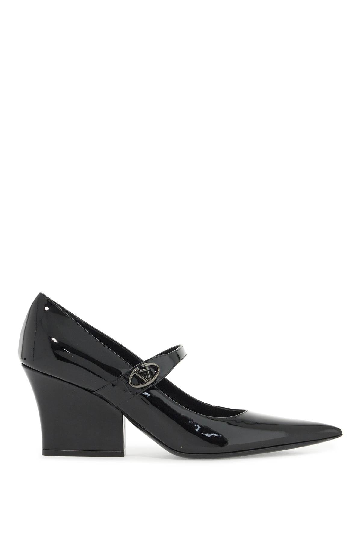 Valentino Garavani's Mary Jane shoes are made of patent leather and finished with a VLogo Locker closure on the strap. The design is pointed and features a leather interior, a covered chunky heel, and a leather sole. Size and Fit - Heel Height = 8 cm,