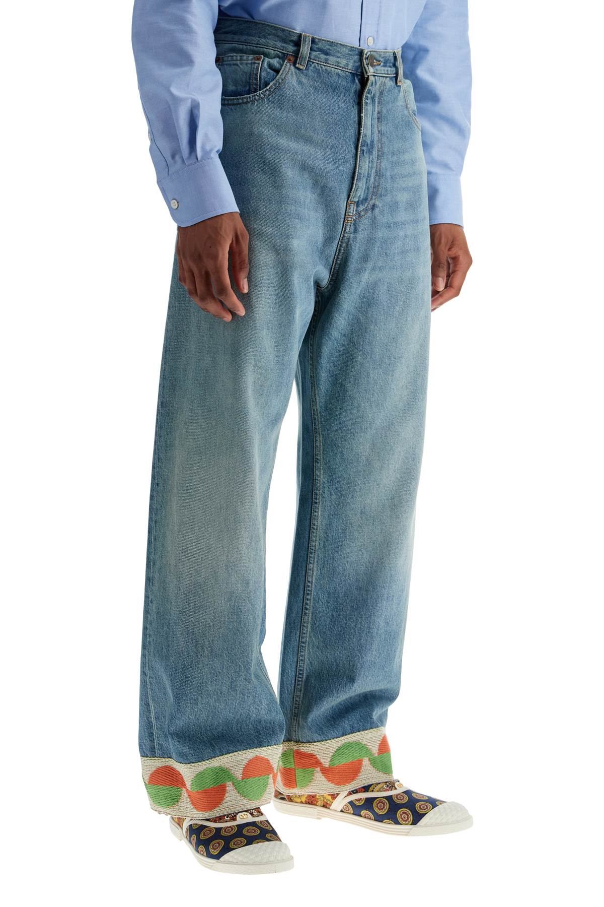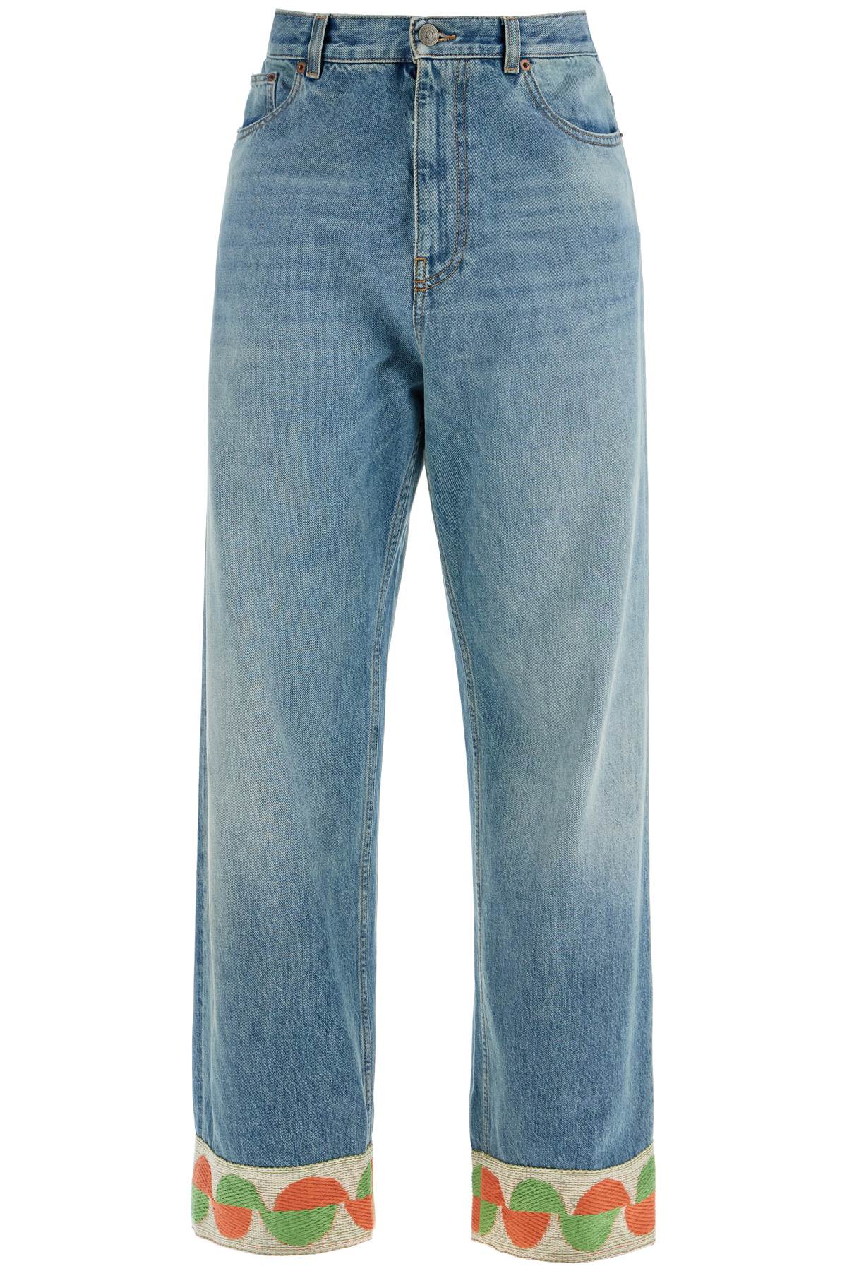 Valentino Garavani medium blue denim jeans with decorative green and orange trim