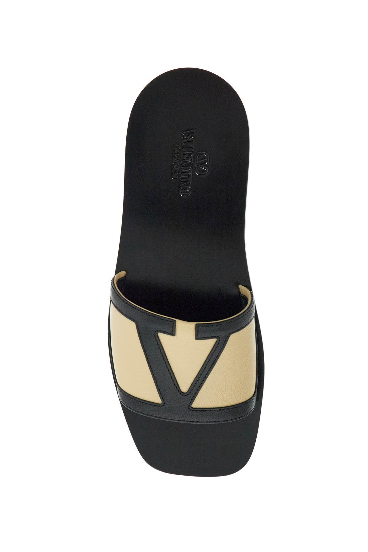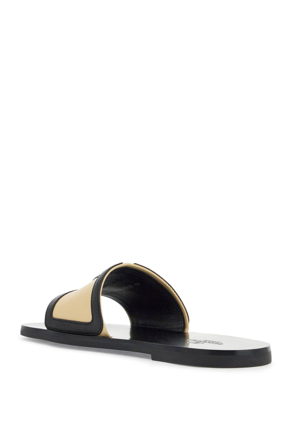 Valentino Garavani men's black and beige goat leather slippers with central strap