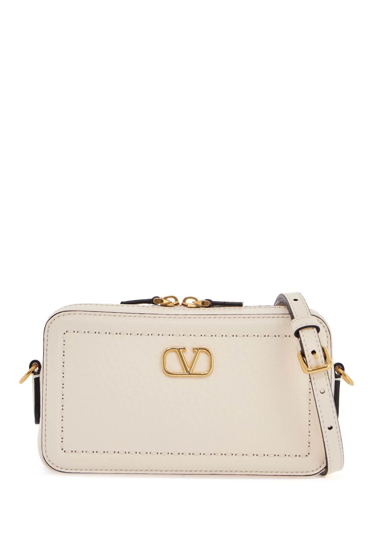Valentino Garavani mini camera case in ivory leather with adjustable strap and golden details