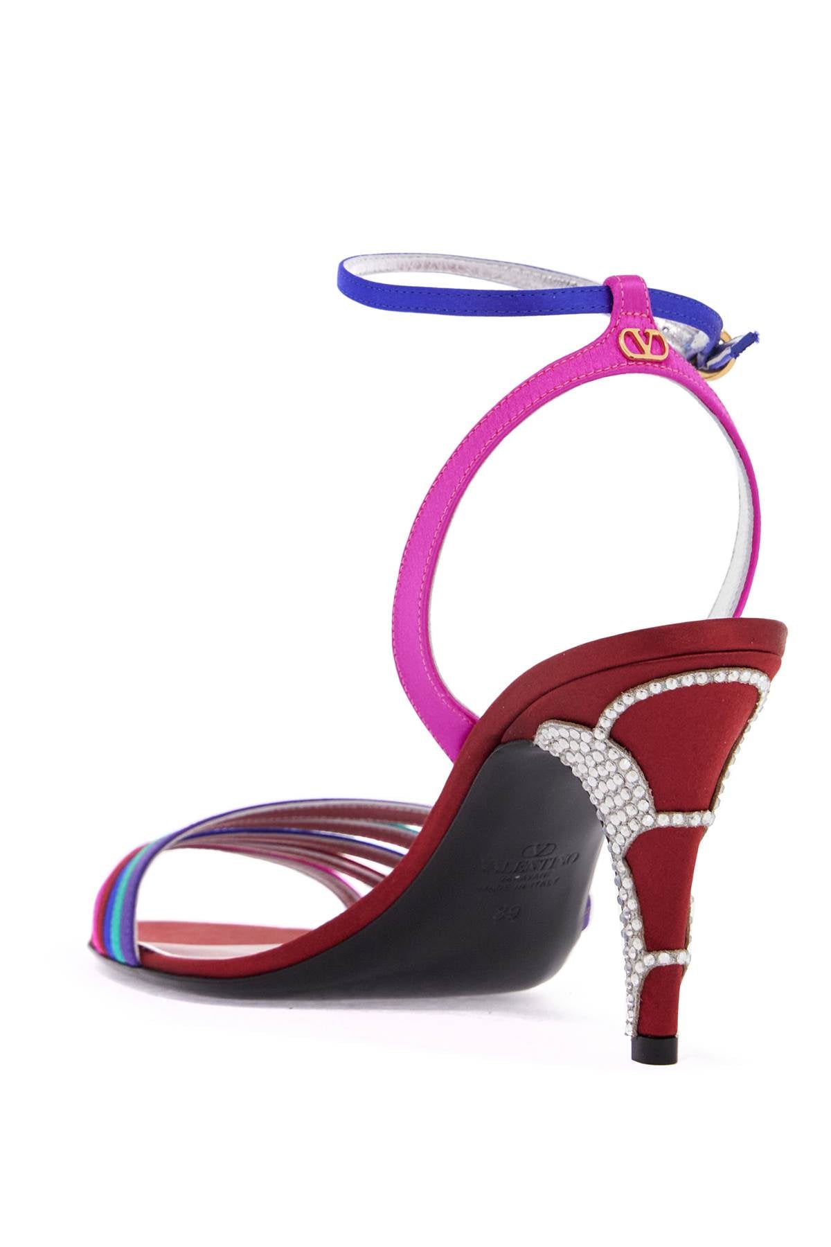 Valentino Garavani multicolor high heel sandals with strass in calfskin and red sole