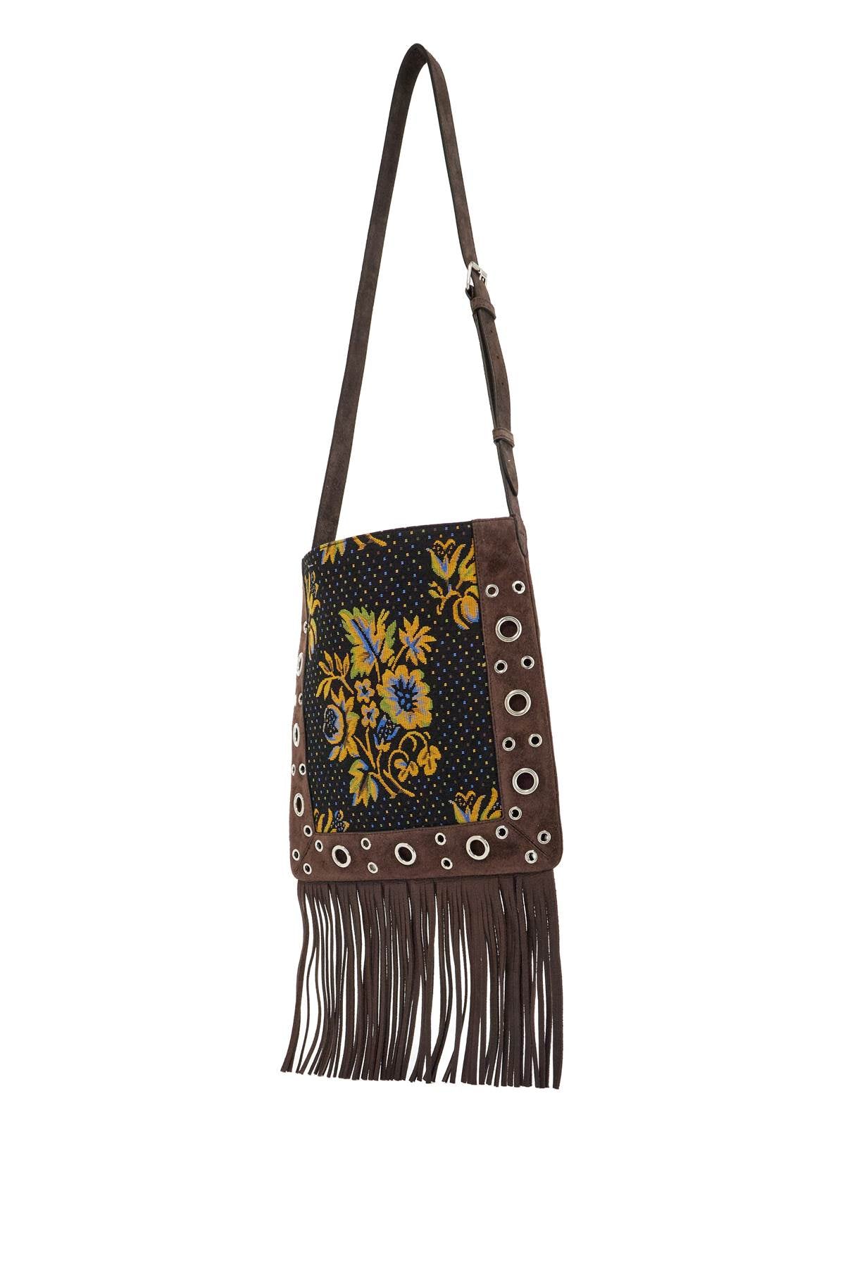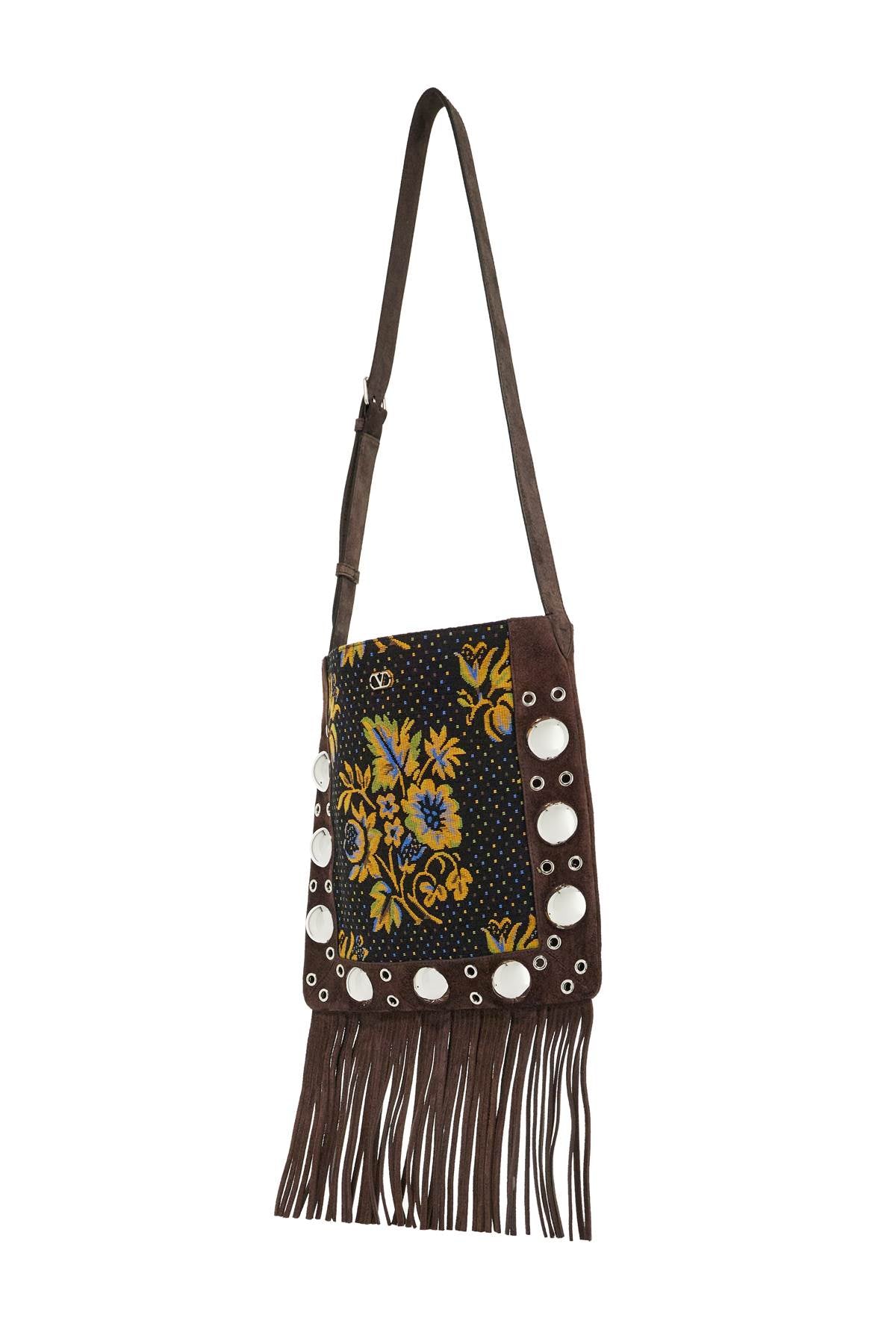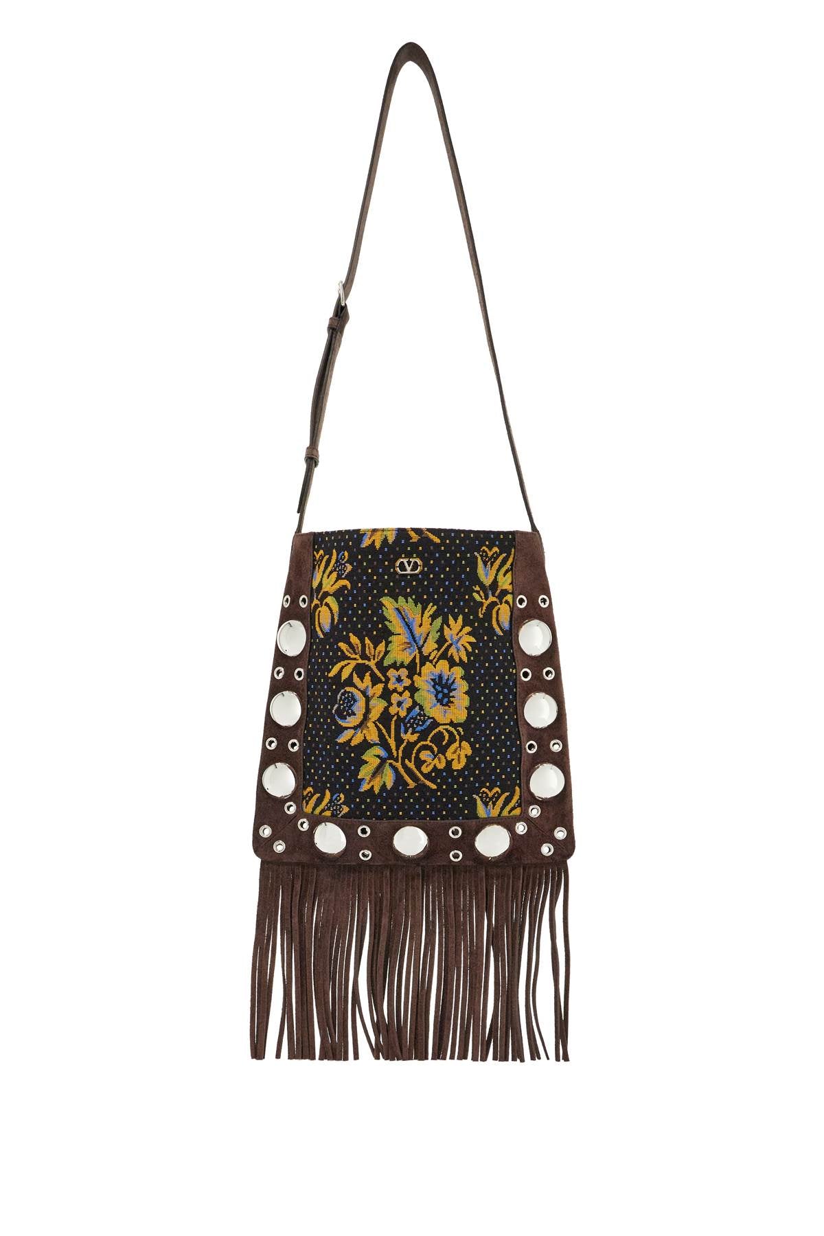 Valentino Garavani multicolored floral crossbody bag in dark brown with fringes