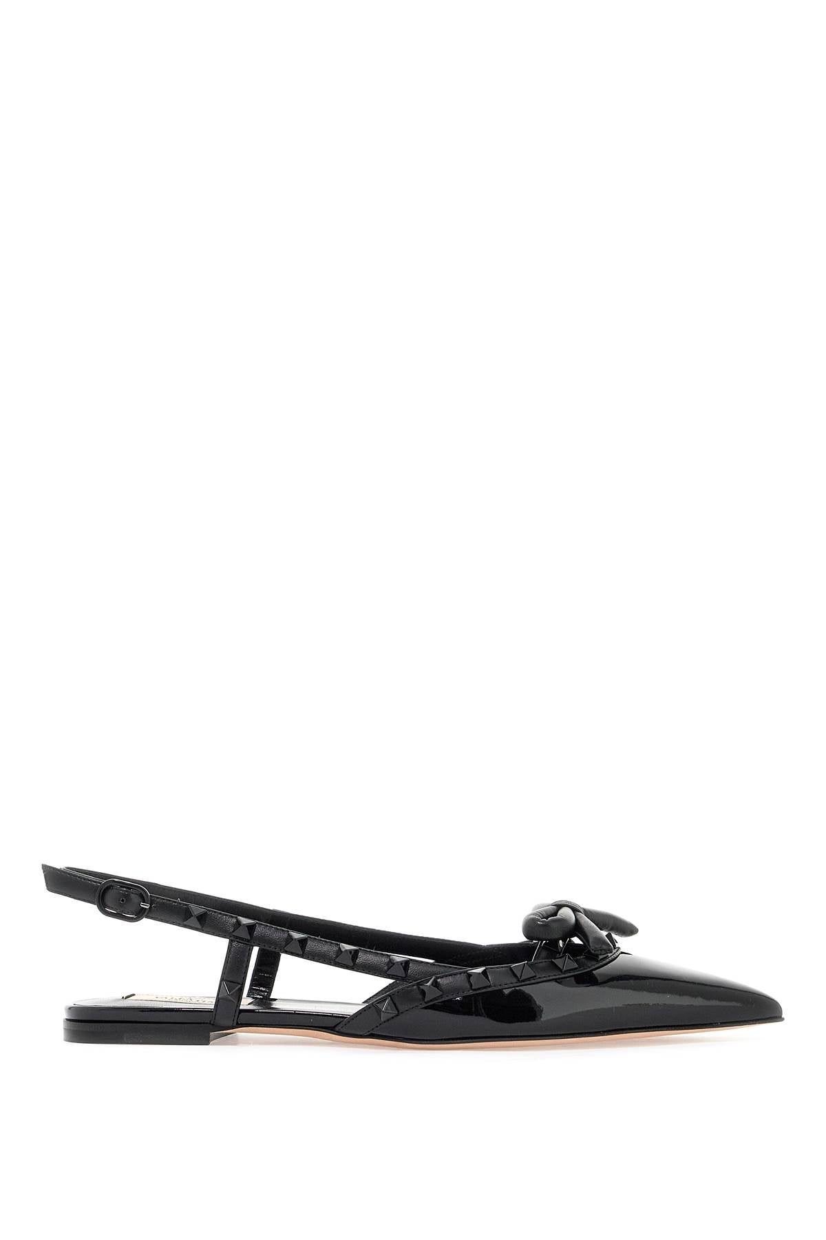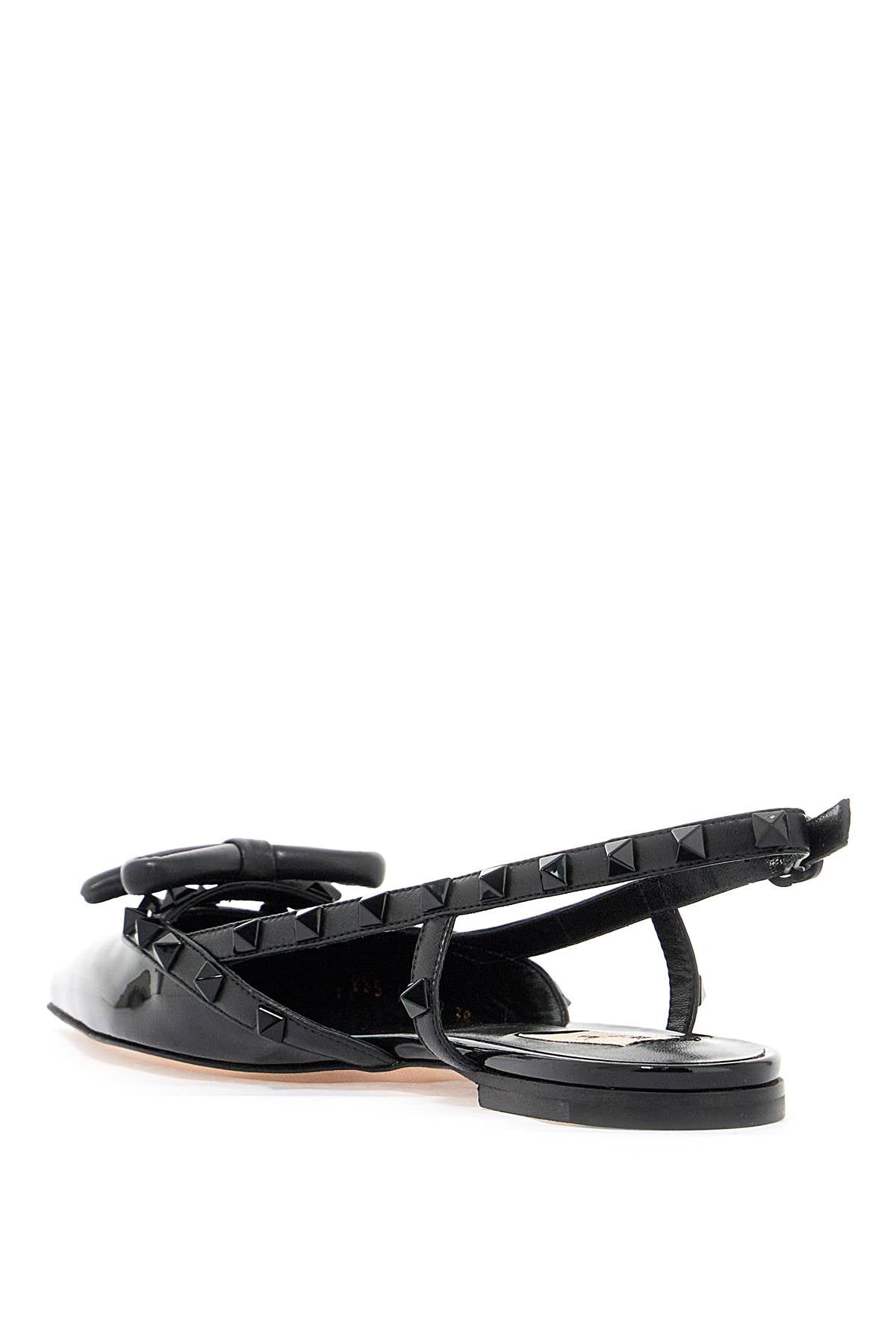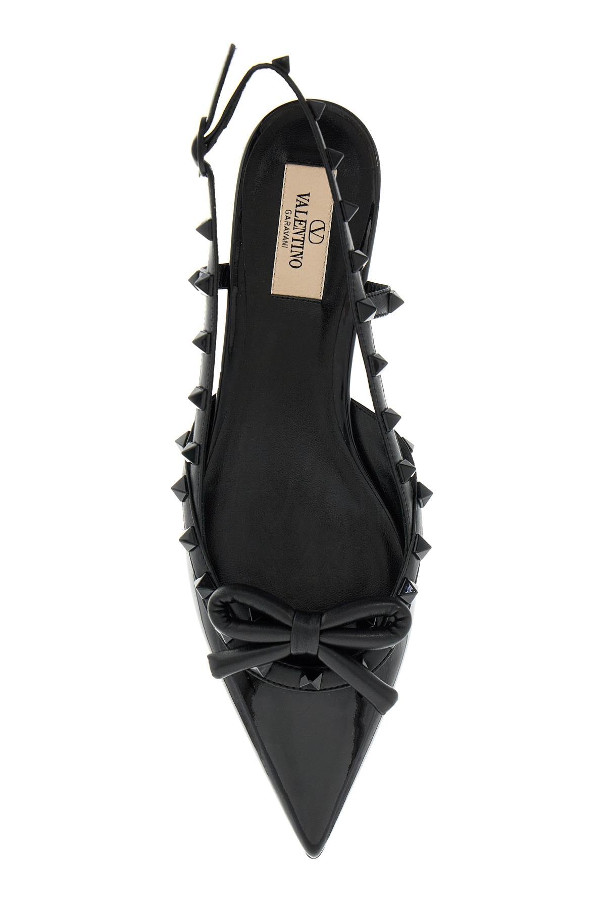 Valentino Garavani's slingback ballerina flats are crafted in glossy patent leather and adorned with iconic tonal studs and a padded leather bow. They feature an adjustable strap, a leather insole, and a leather sole.