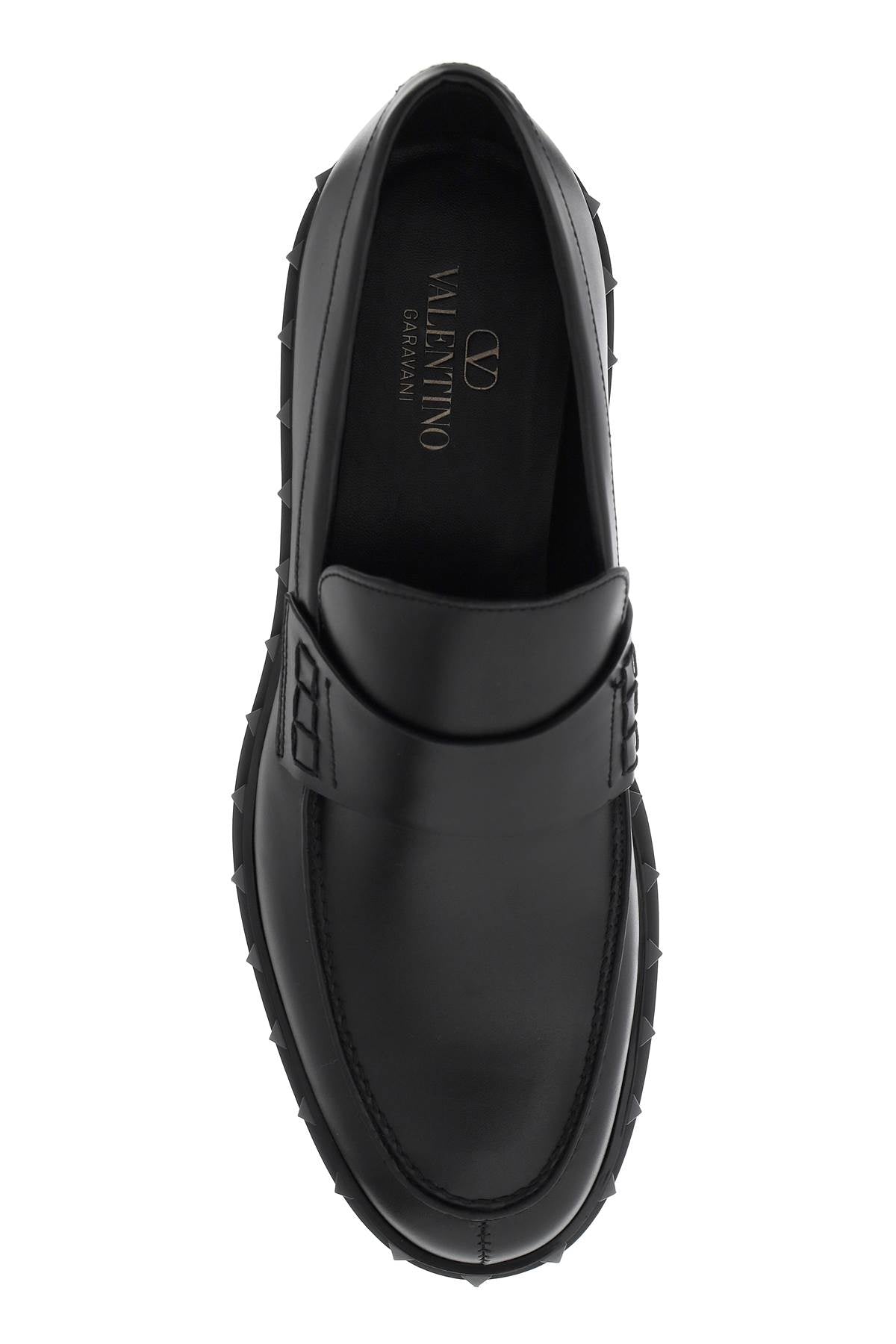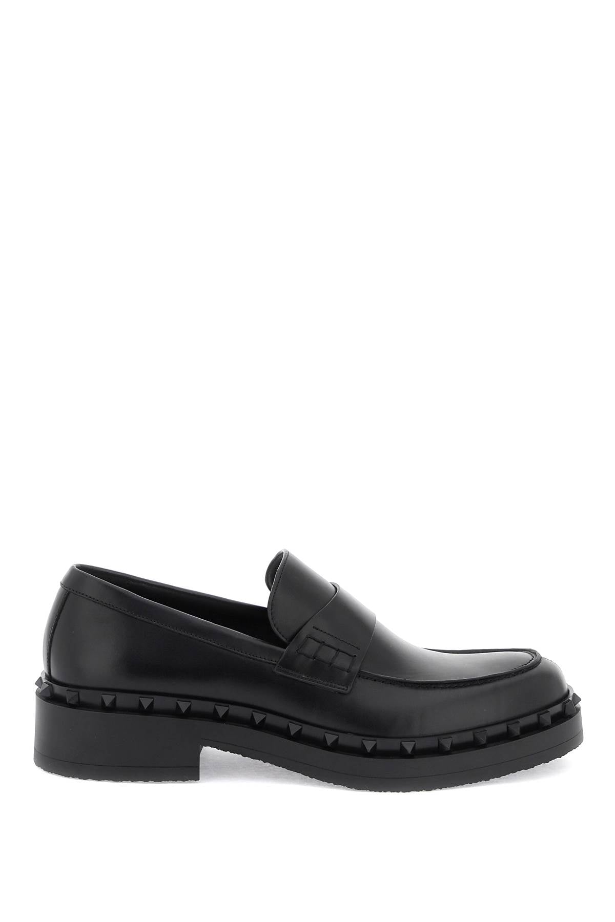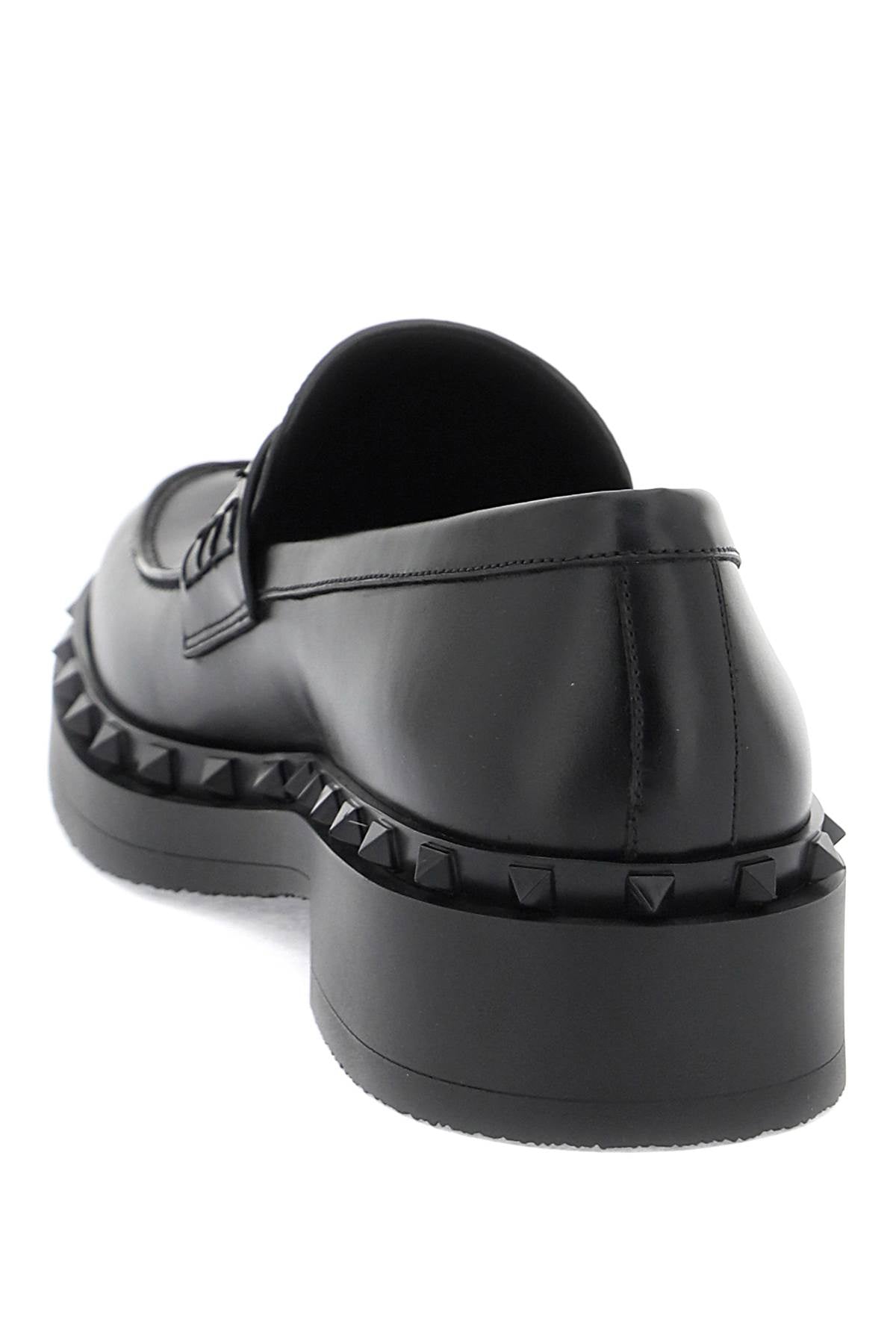 Valentino Garavani's Rockstud M-Way loafers are crafted in smooth leather and adorned with a rubber tone-on-tone studded trim. The lining and insole are made of leather, while the sole features embossed studs. These stylish loafers are perfect for adding a touch of edginess to any outfit. Size and Fit - Heel Height = 4 cm,
