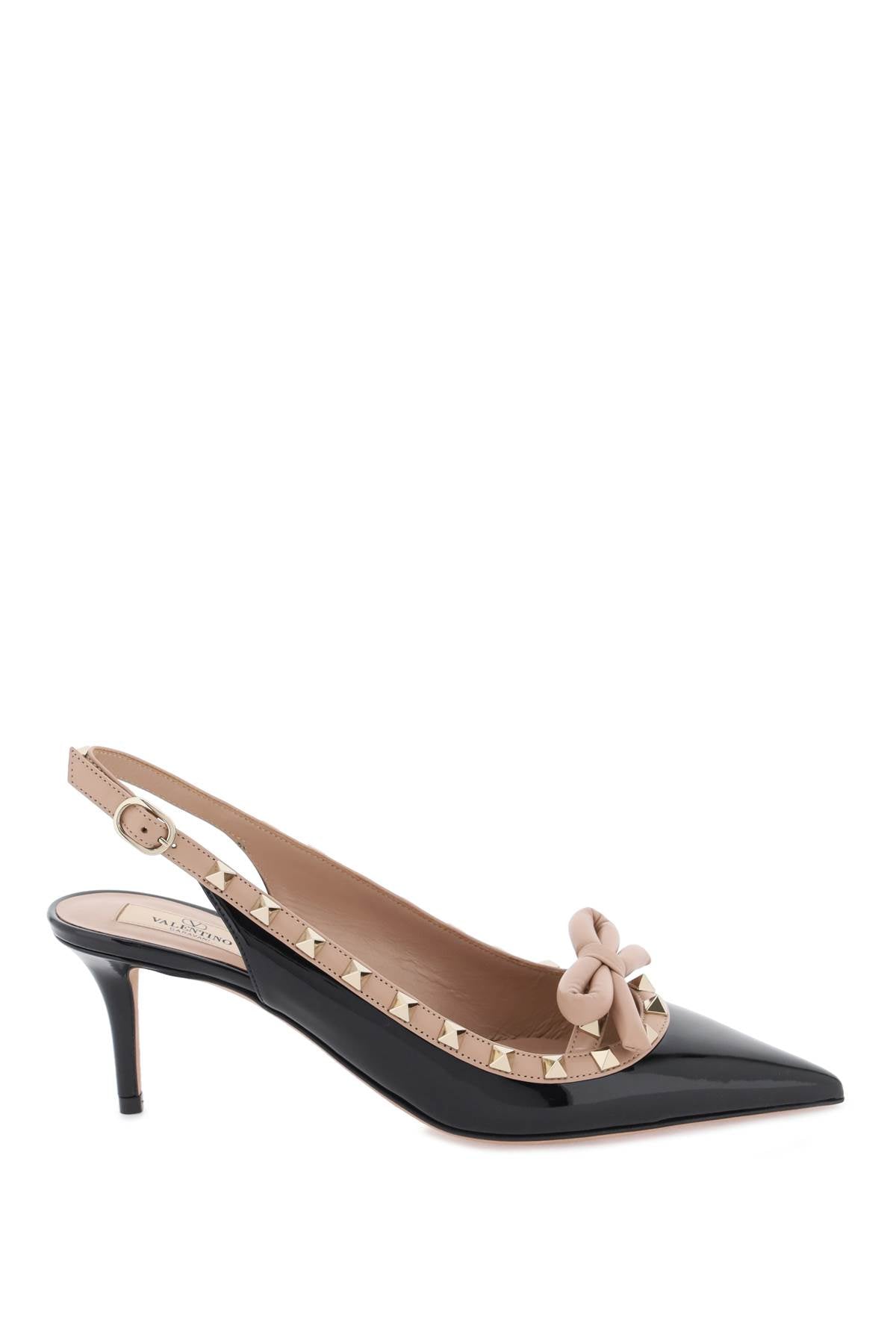 Valentino Garavani slingback pumps made of patent leather and featuring the iconic platinum-finished studs and nappa leather bow. Leather footbed and leather sole. Size and Fit - Heel Height = 6,5 cm,