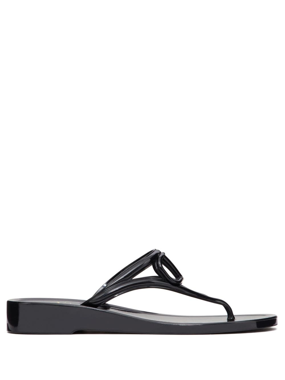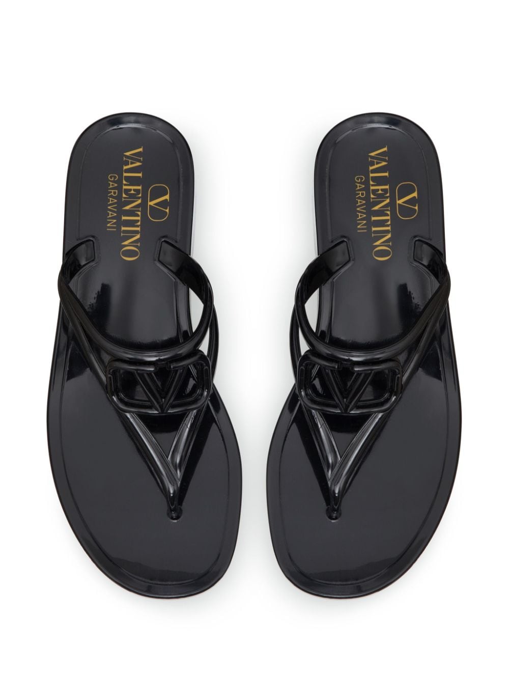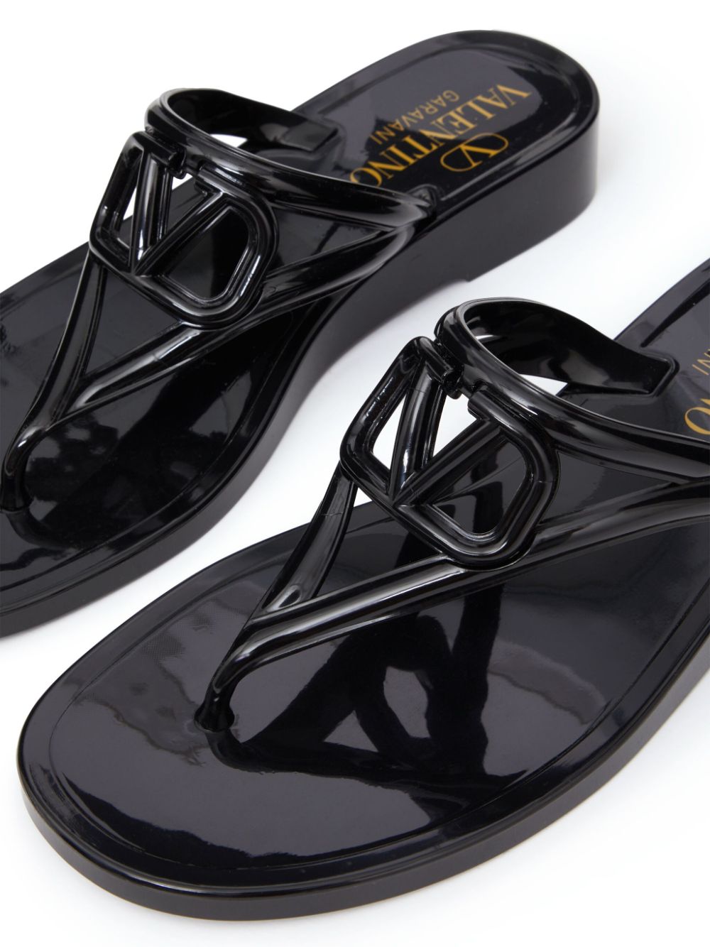 Valentino Ready To Wear black VLogo Signature open toe thong strap slip-on style branded footbed flat sole Size and Fit - Heel 0,8 in / 2 cm
