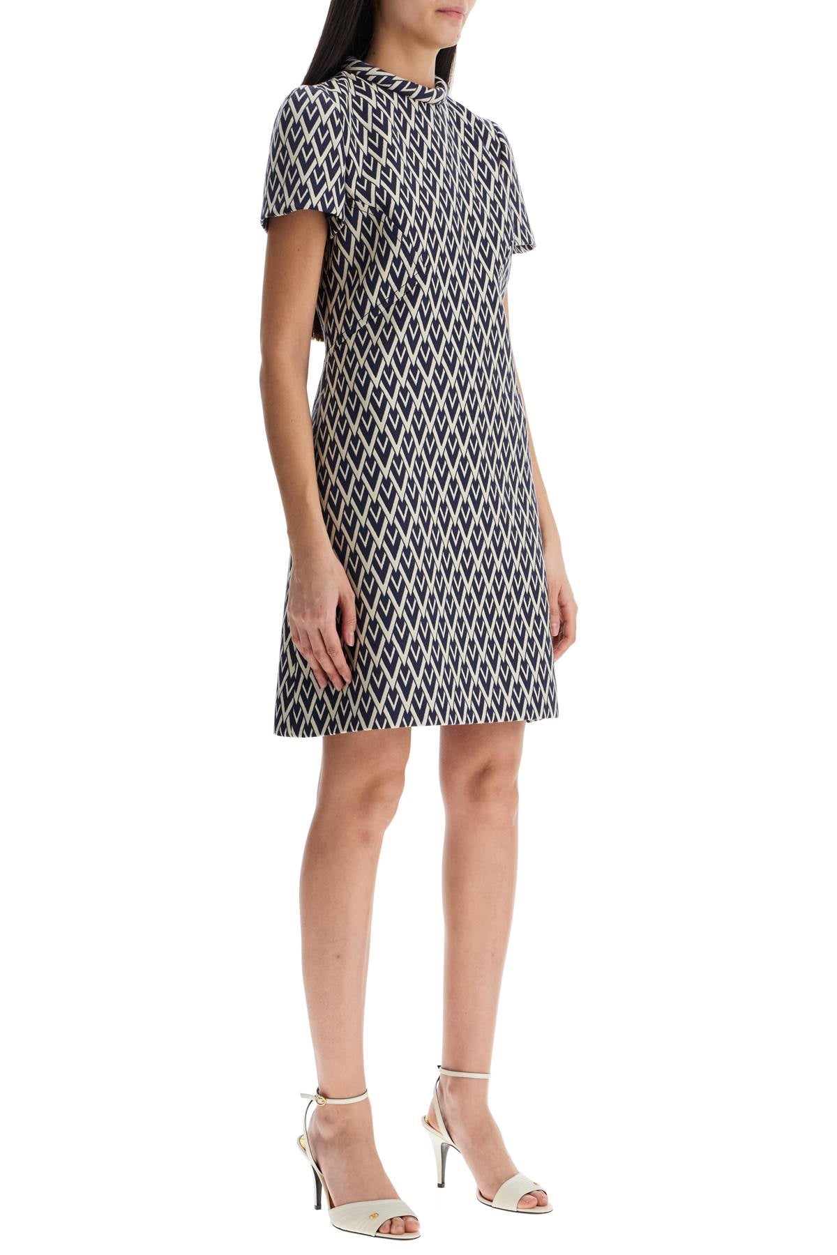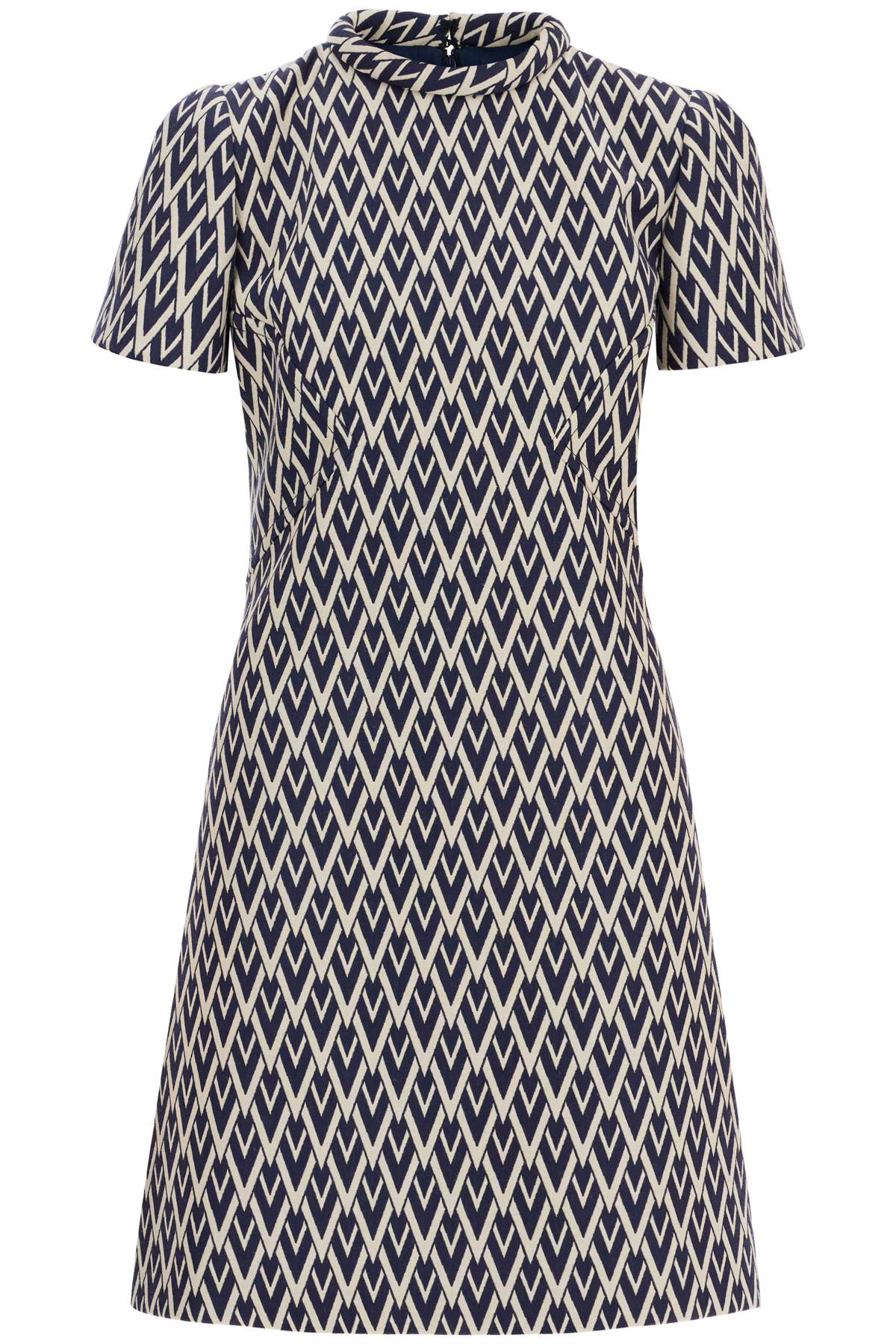 VALENTINO GARAVANI Blue Dress in 100% wool with slim design and geometric pattern. Contemporary elegance and comfort merge in this versatile piece, perfect for formal and casual events.