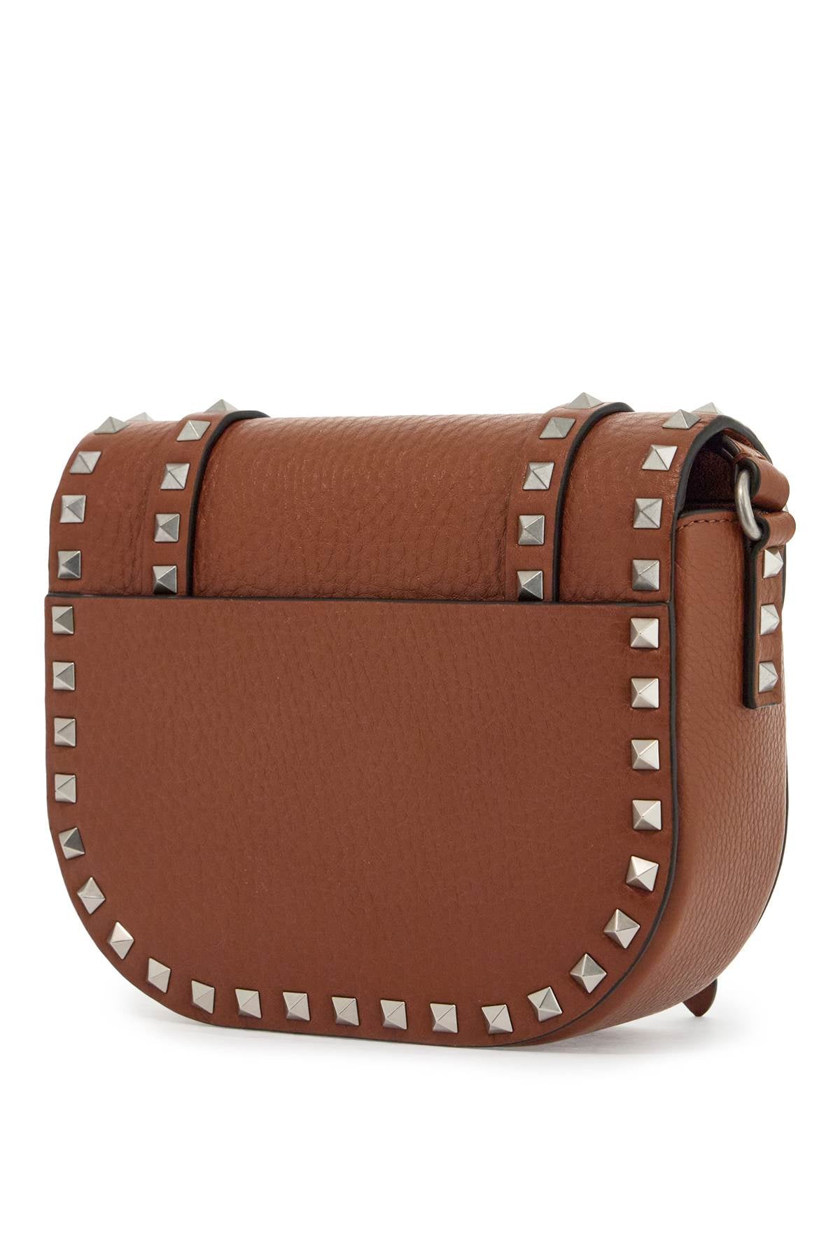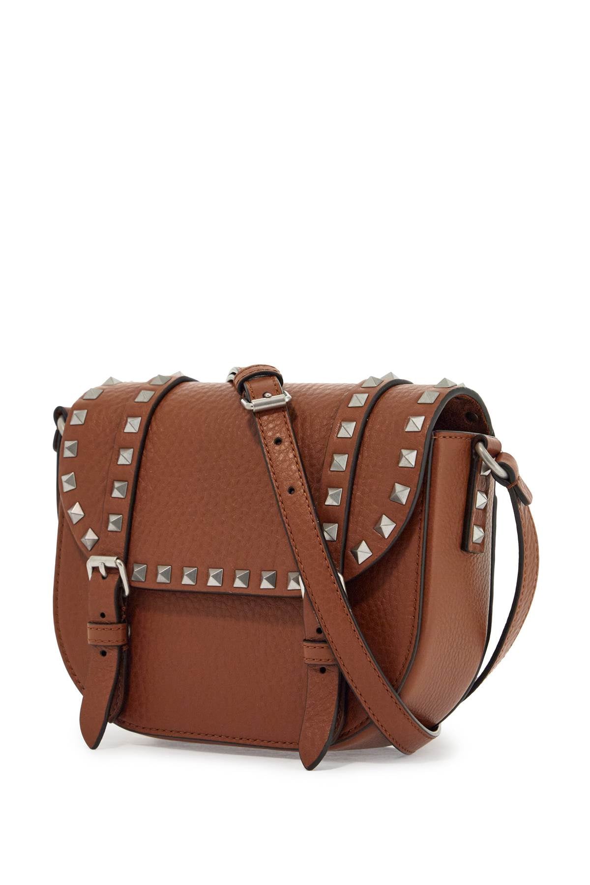 The small Rockstud messenger bag by Valentino Garavani is made of hammered leather and adorned with the iconic antique silver finish studs. It features a flap closure with hidden magnetic buttons, adjustable decorative straps, and a suede-lined interior with a zip pocket and two credit card slots. The adjustable shoulder strap adds versatility to this stylish accessory. Size and Fit - Bag Length = 19 cm, Bag Height = 14 cm, Bag Weight = 6 cm,