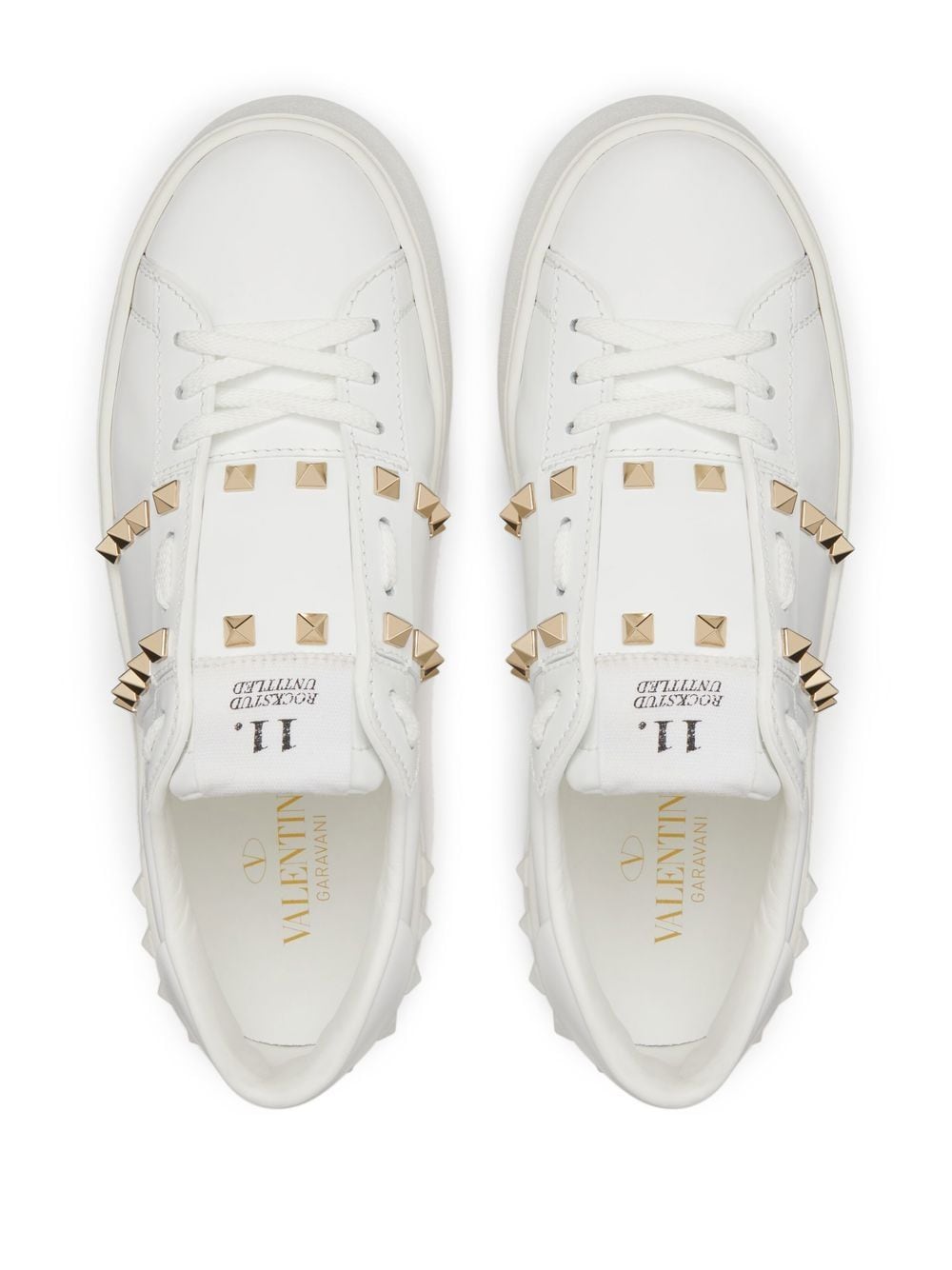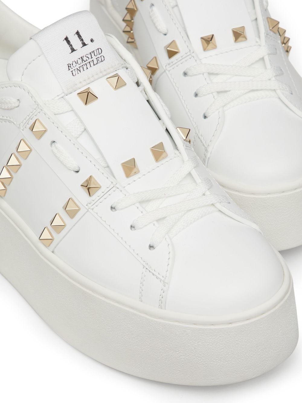 Characterized by a retro aesthetic, these Valentino Garavani sneakers are embellished with the iconic gold-colored studs on the sides and on the tongue. Boasting a smooth leather construction, they come complete with a high platform sole. Size and Fit - Heel height 5 cm