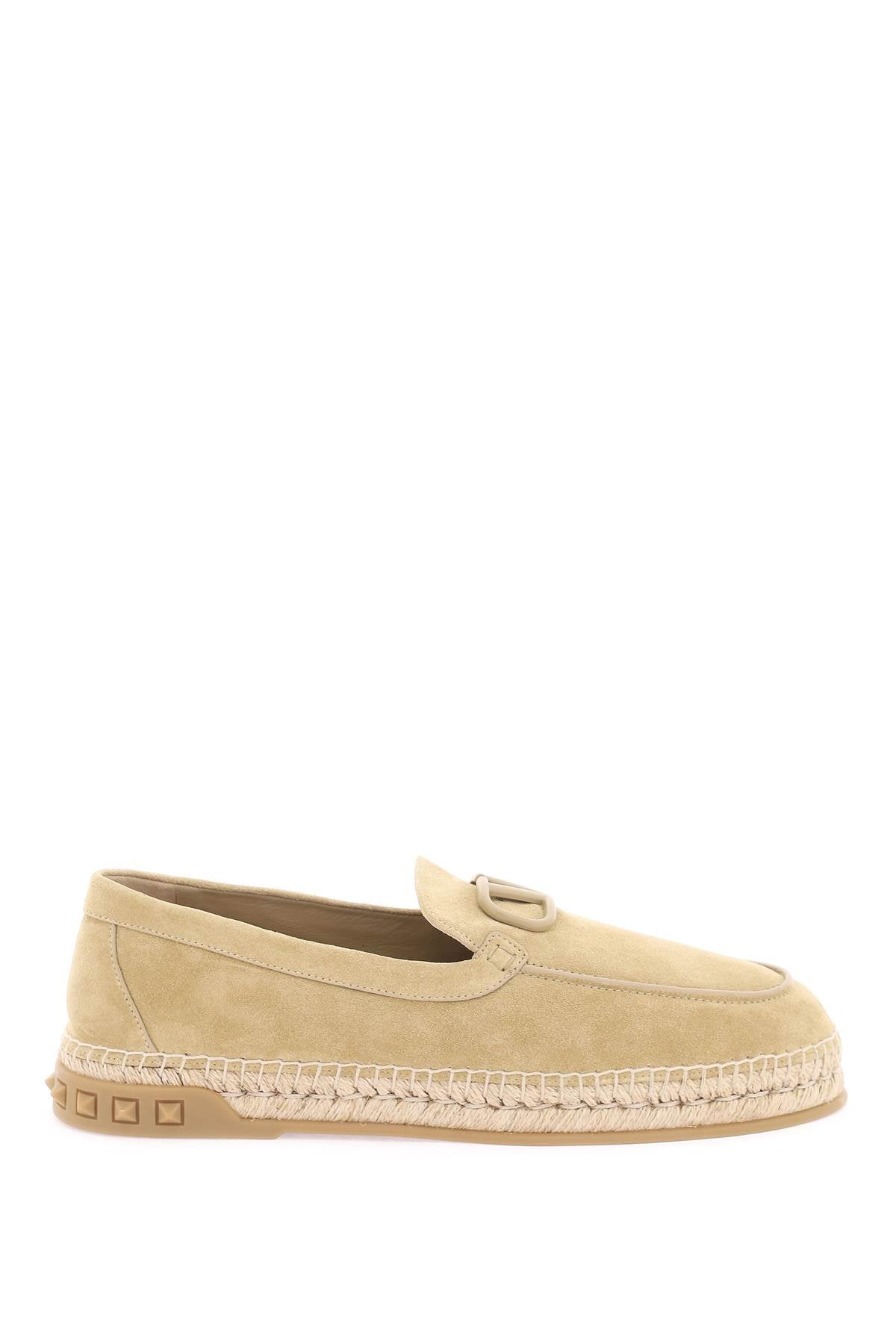 Valentino Garavani suede espadrilles adorned with iconic tone-on-tone VLogo Signature. Leather lining and rubber sole with embossed studs on the back. Size and Fit - Heel Height = 2 cm,