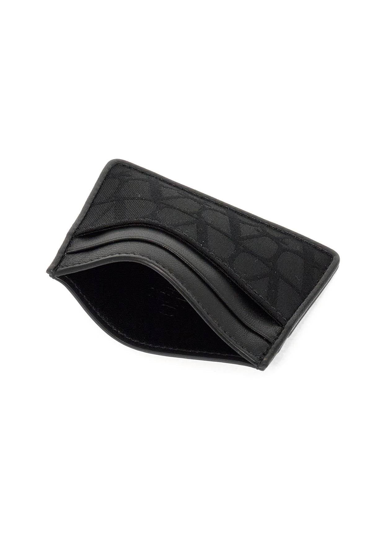 Valentino Garavani card holder made of leather and Toile Iconographe jacquard fabric, featuring two credit card slots on the front and back and a central slip pocket. Size and Fit - Accessory Length = 10 cm, Accessory Height = 7 cm,