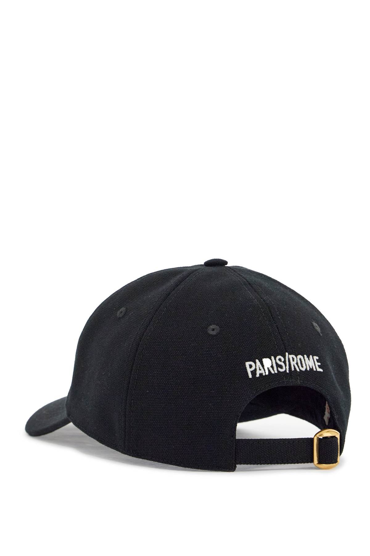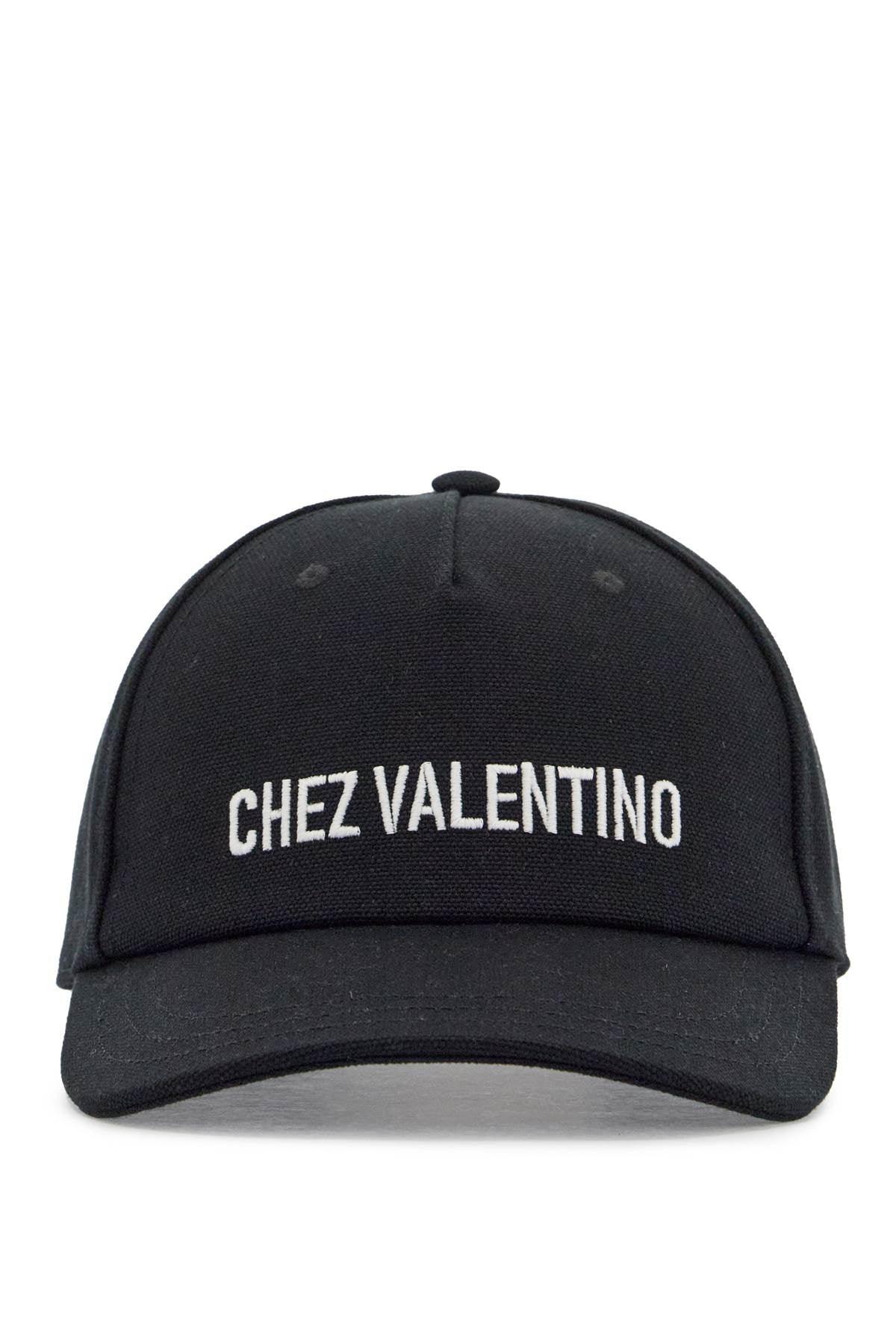 Valentino Garavani baseball cap made of cotton canvas with Chez Valentino lettering on the front and PARIS/ROME embroidered in contrast on the back. Lined interior and adjustable back strap. The item in the photo corresponds to size 58.