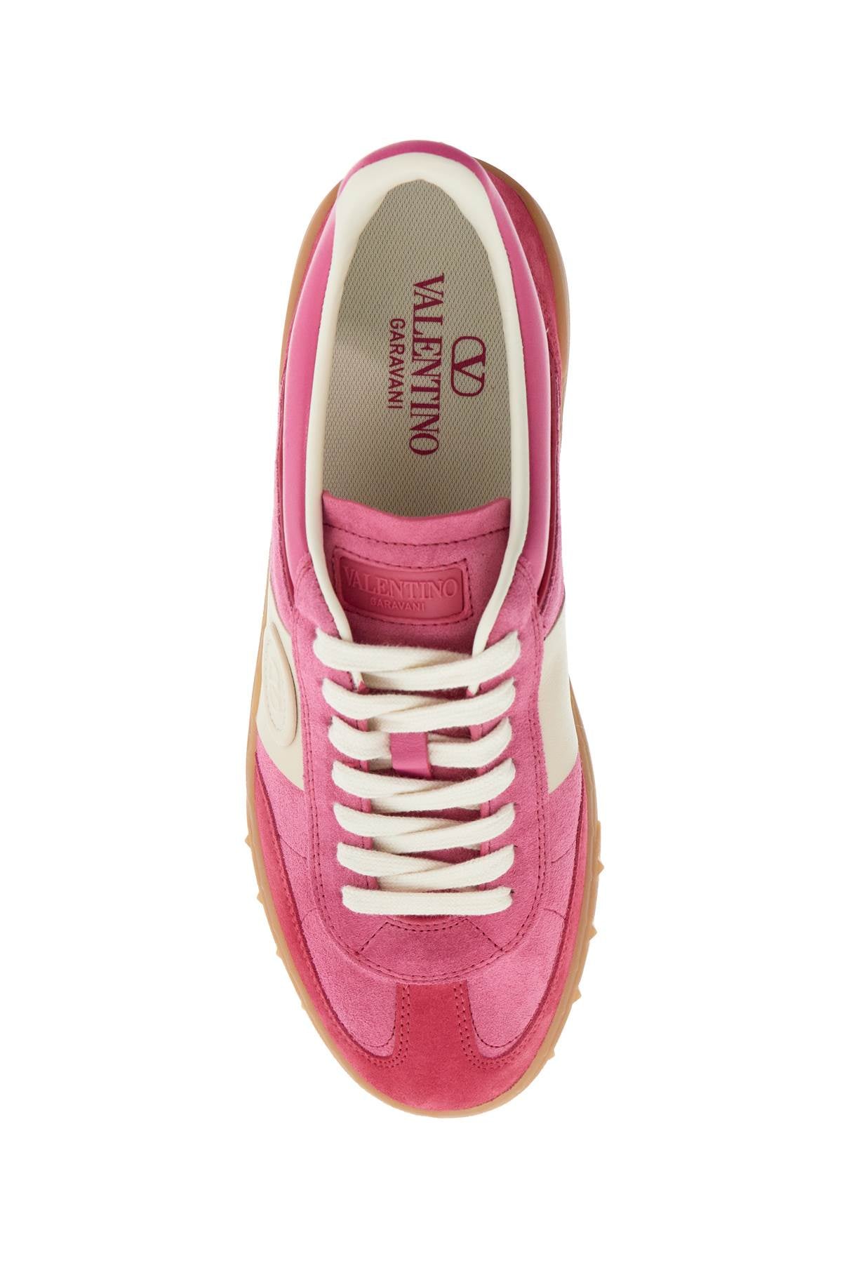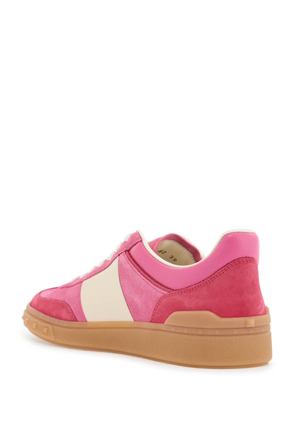 The Valentino Garavani sneakers in pink suede offer elegance and comfort for women. Multicolored design with a translucent rubber sole. Perfect for casual and sophisticated looks.