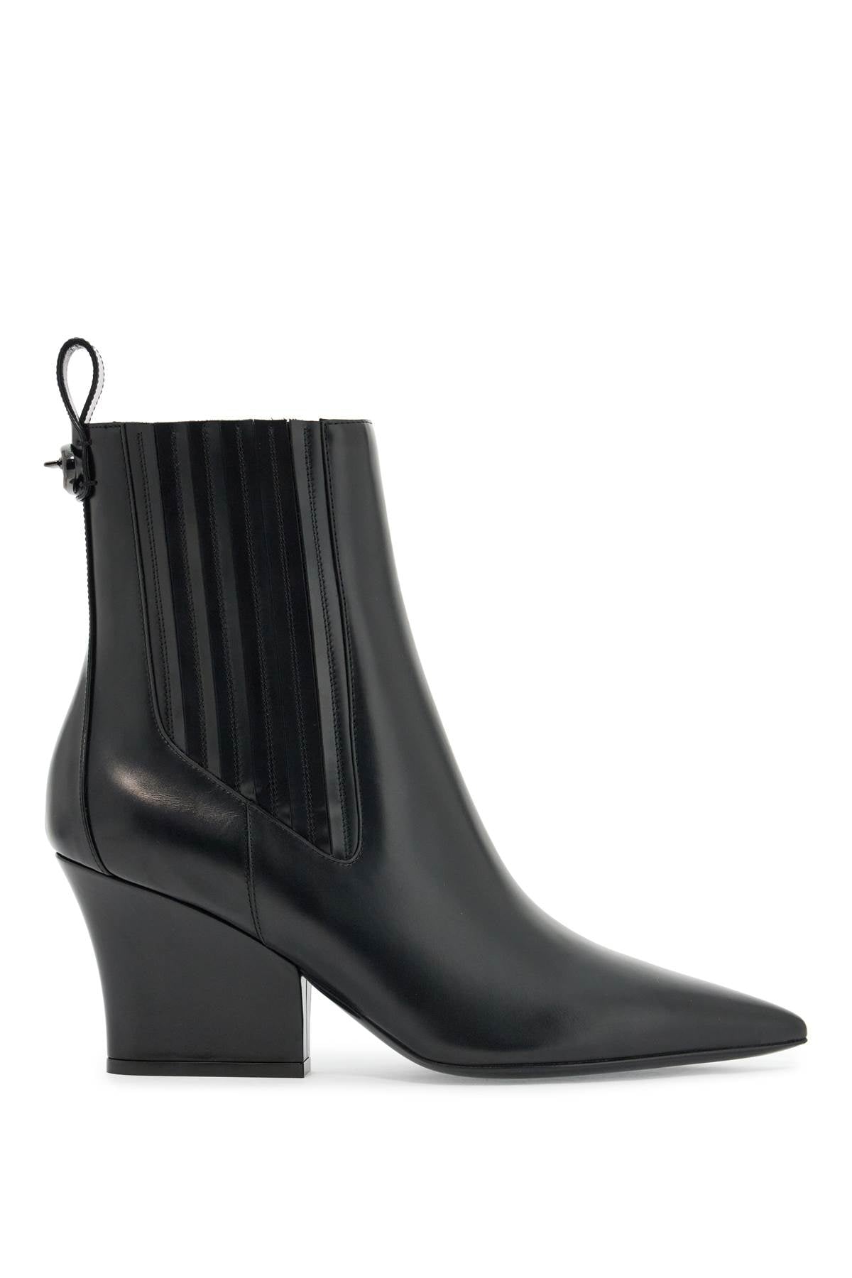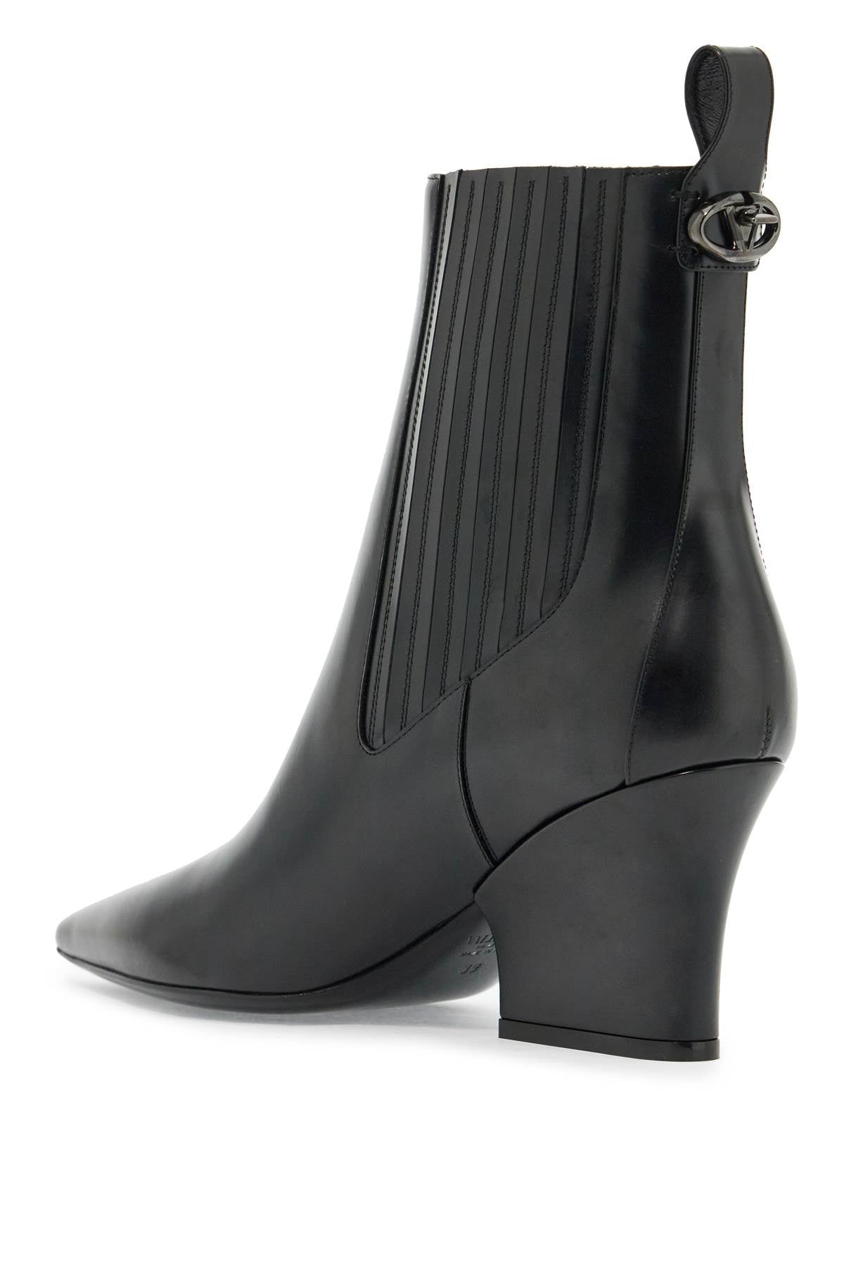 Valentino Garavani Beatle ankle boots made of brushed leather with hidden elastic side inserts covered by leather panels. They feature a pointed design, a leather back strap and the Signature Vlogo with ruthenium finish loop. Leather interior and leather sole. Size and Fit - Heel Height = 7,5 cm,
