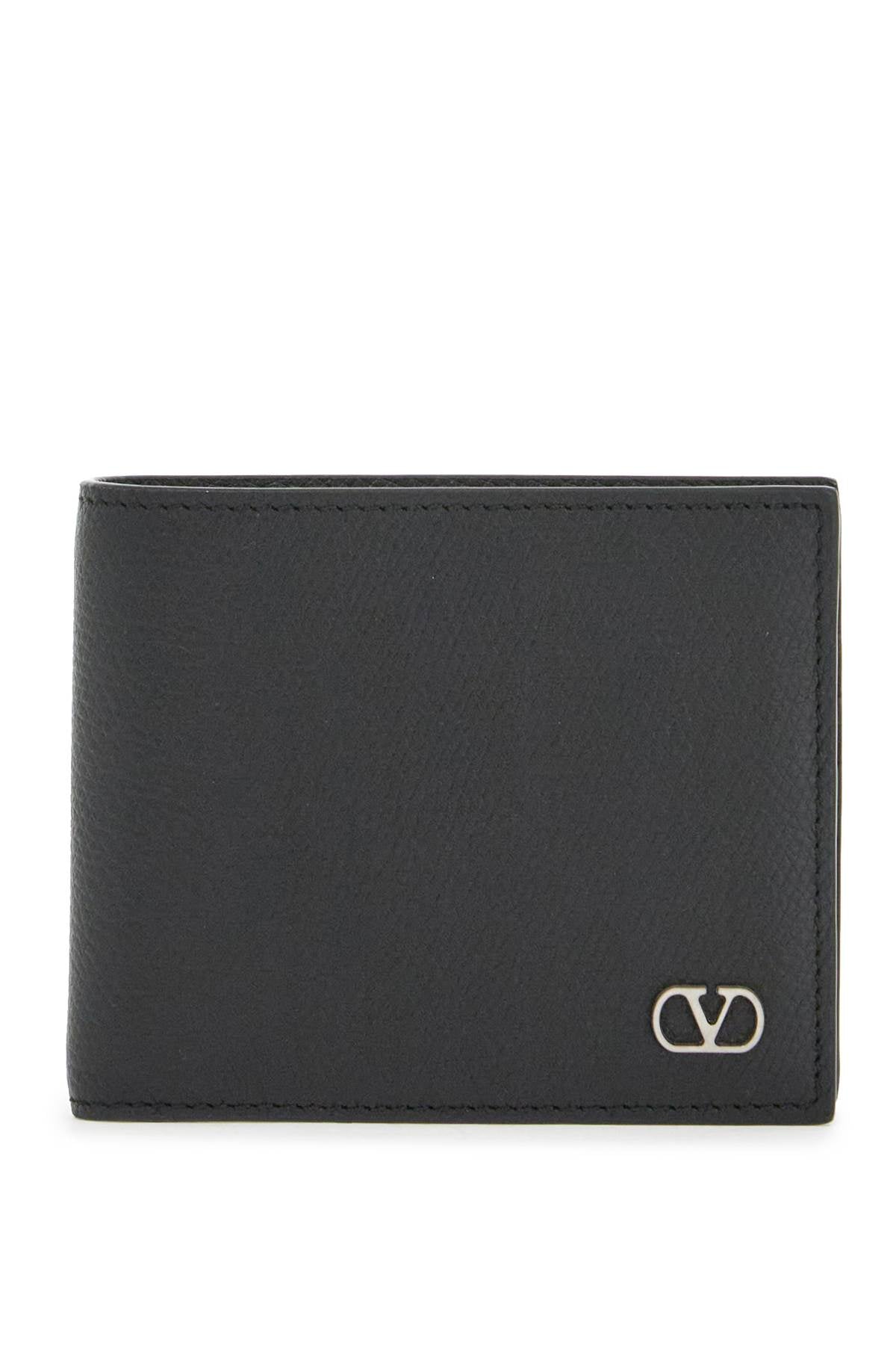 This bi-fold wallet by Valentino Garavani is made of hammered leather and features a small silver metal Vlogo Signature. The interior includes one compartment for bills, two slip pockets, and eight credit card slots. Size and Fit - Accessory Length = 11 cm, Accessory Height = 9 cm,