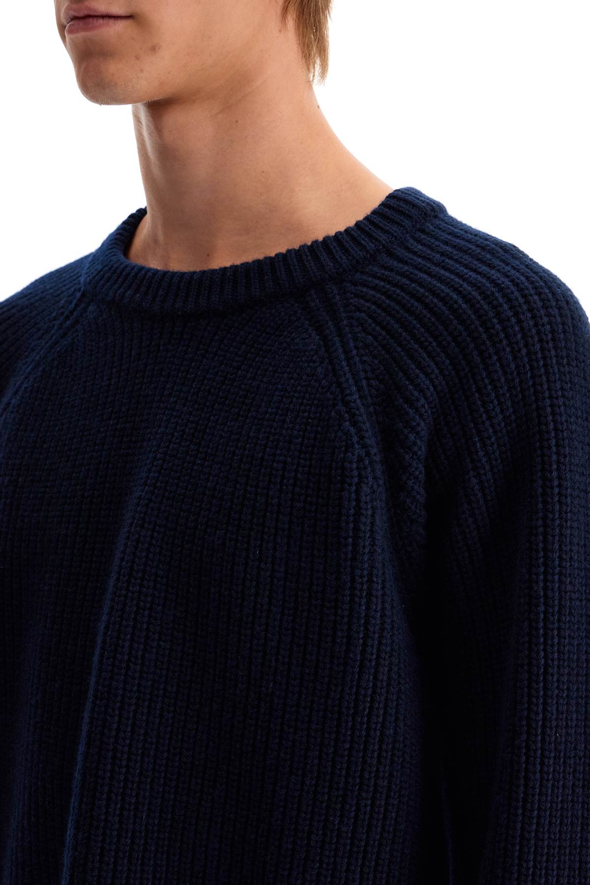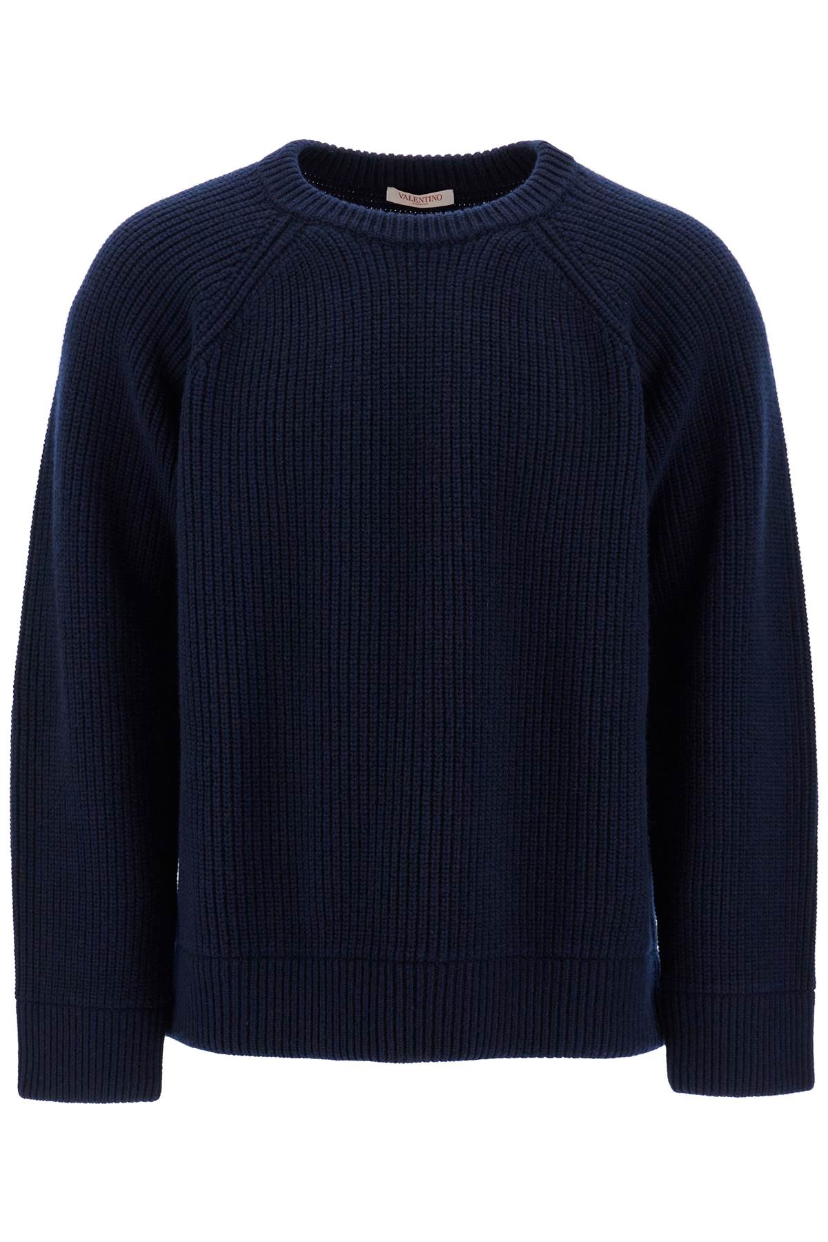 Valentino crew neck pullover made of pure English ribbed wool, with a double fabric neckline and raglan sleeves. Relaxed fit. The model is 187 cm tall and wears size L.