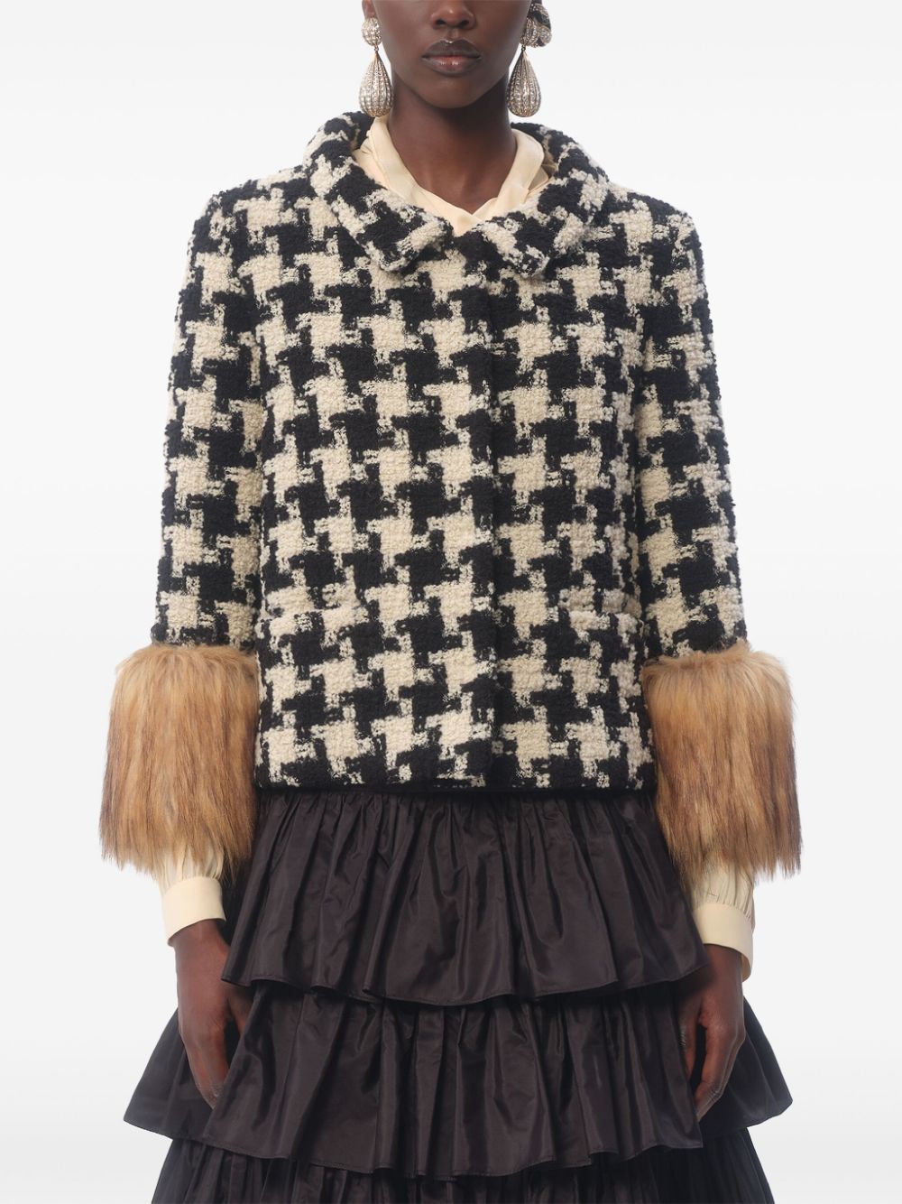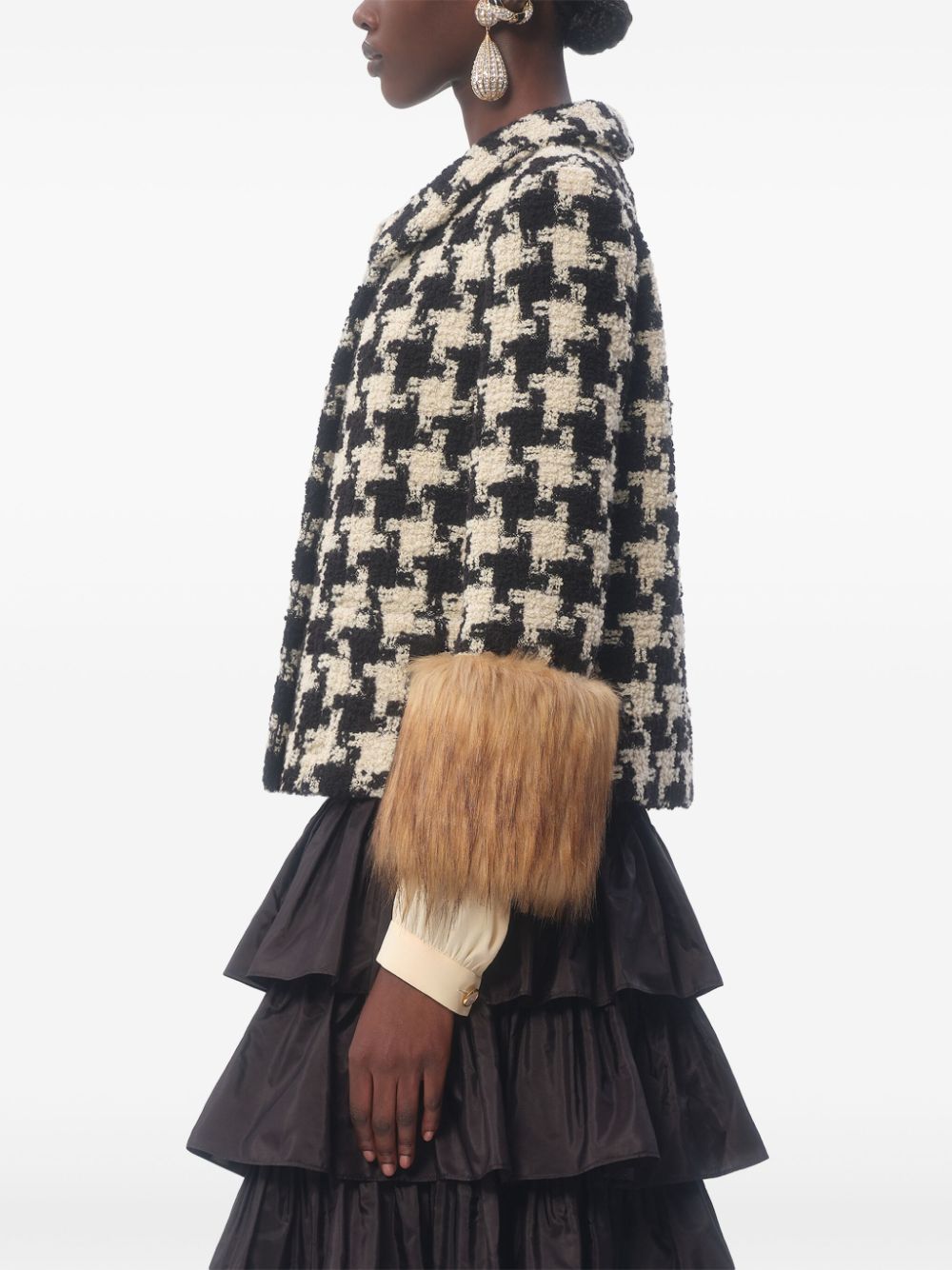 black/white virgin wool-silk blend check pattern concealed front fastening spread collar two front jetted pockets long sleeves straight hem Size and Fit - This piece fits true to size. We recommend you get your regular size. Model is 1,75m / 5ft 8in wearing size 40 (IT)