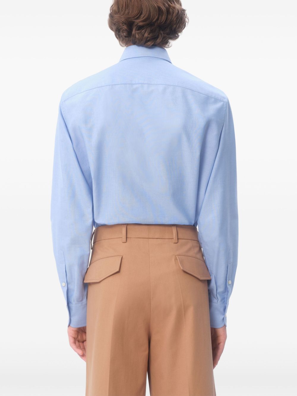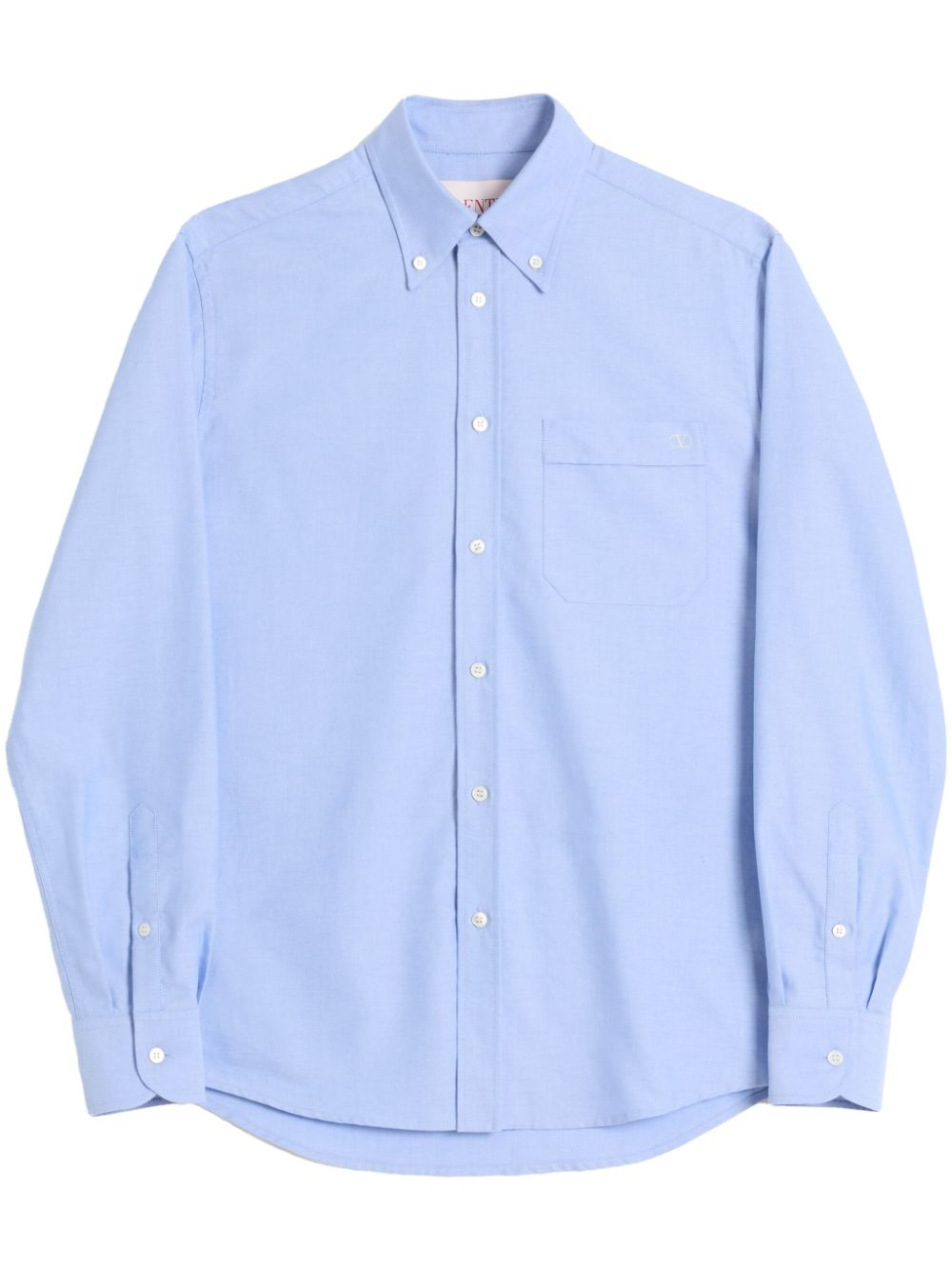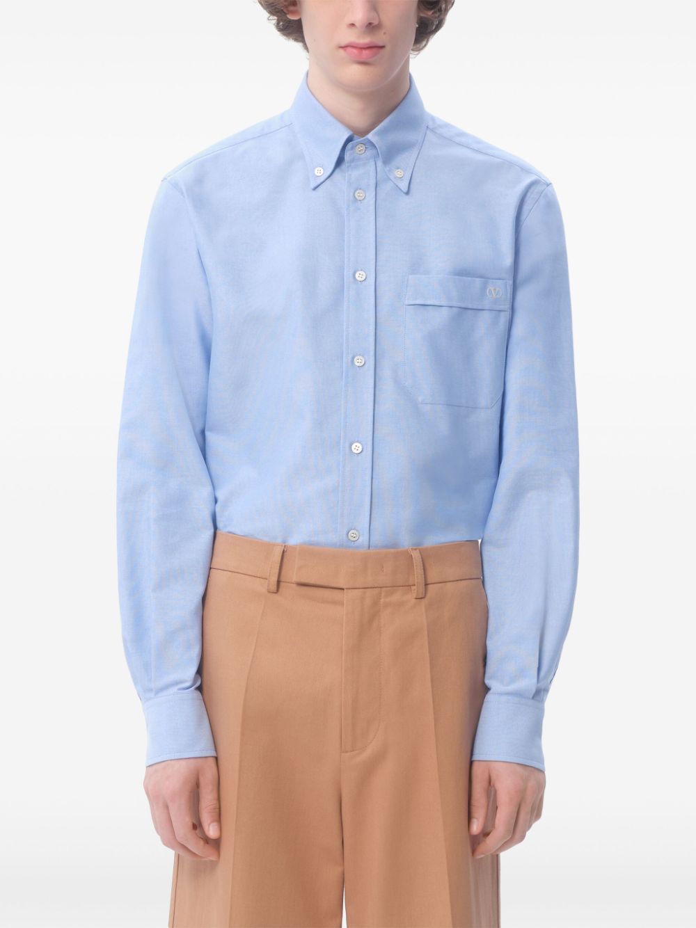 Valentino Ready To Wear blue embroidered logo at the chest button-down collar front button fastening chest patch pocket long sleeves buttoned cuffs curved hem Size and Fit - This piece fits true to size. We recommend you get your regular size. Model is 1,84m / 6ft 1in wearing size 39 (COLLAR CM)