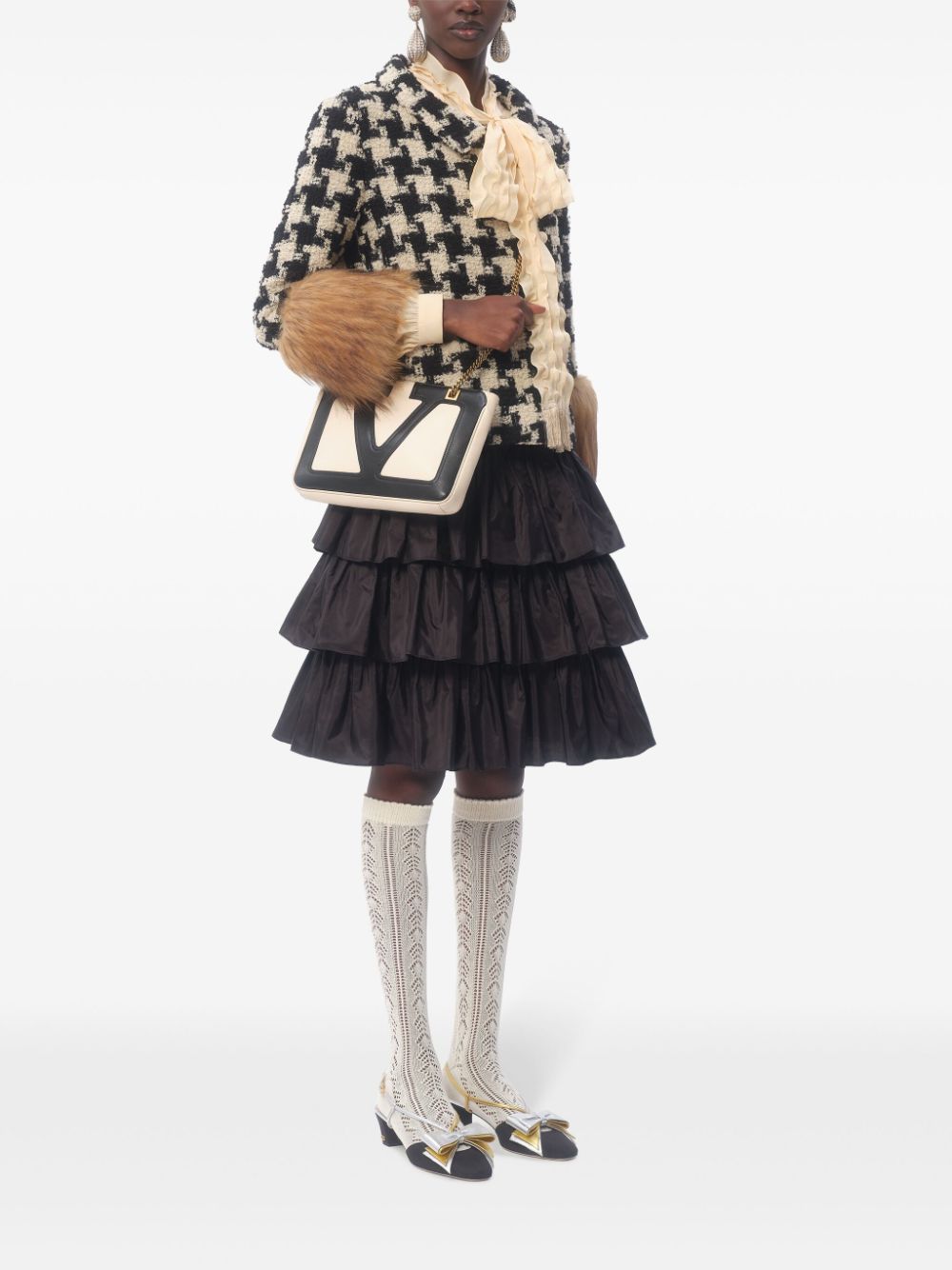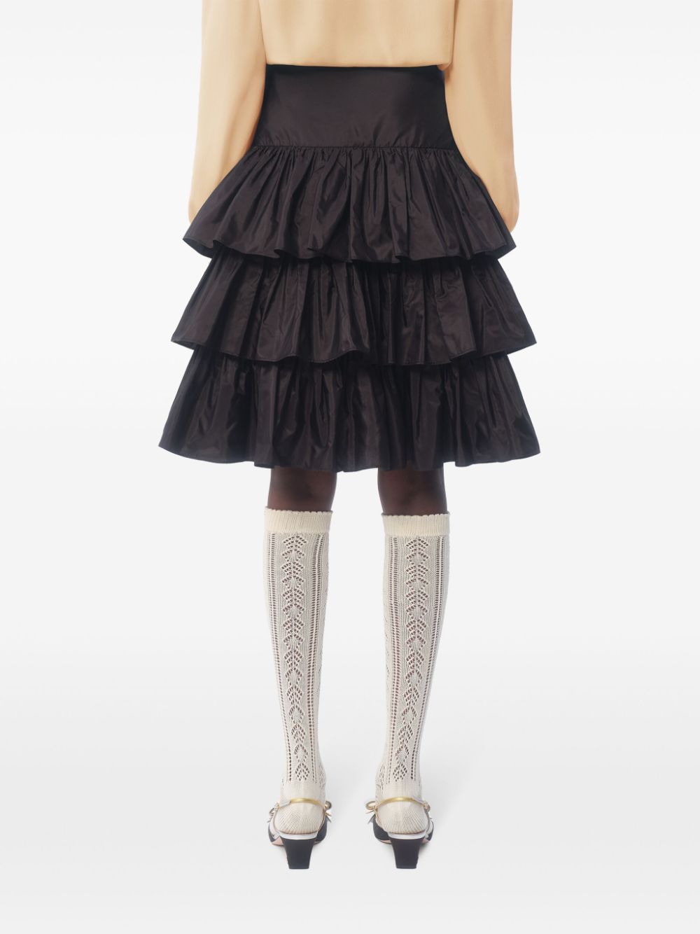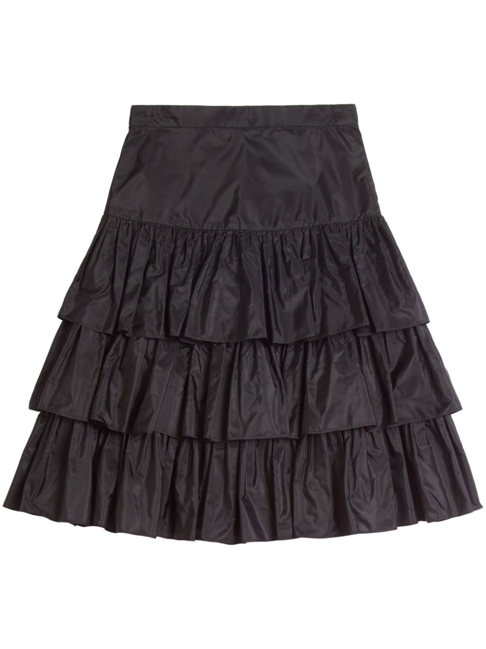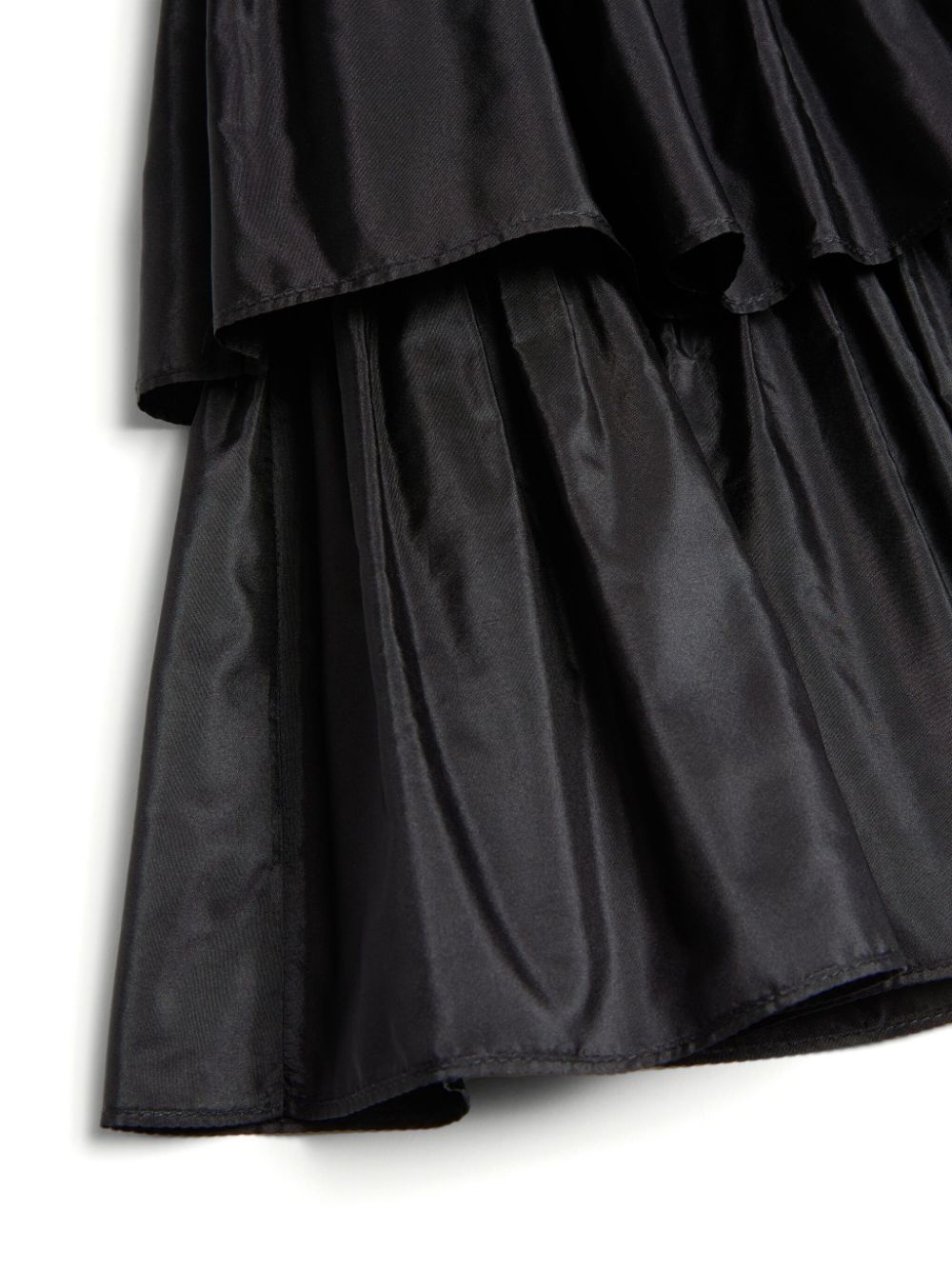 black silk satin finish side zip fastening high-waisted fully ruffled full lining knee-length Size and Fit - This piece fits true to size. We recommend you get your regular size. Model is 1,75m / 5ft 8in wearing size 40 (IT)